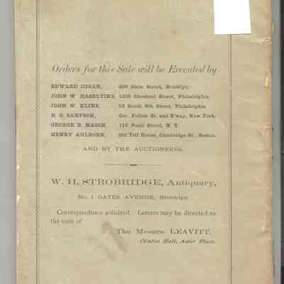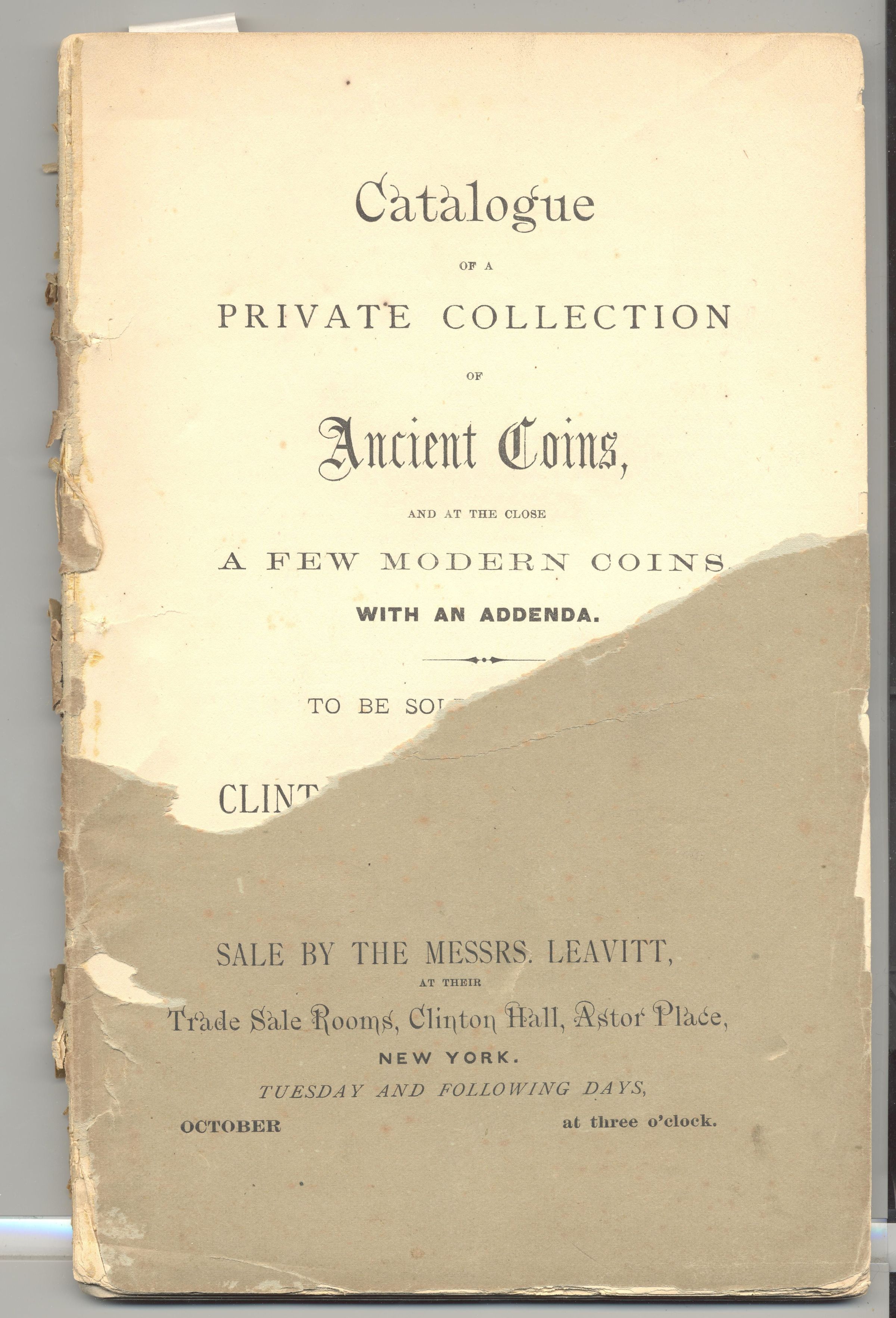 CAT, COINS, 1874, NY. PRIVATE COLLECTION OF ANCIENT COINS. WITH AN ADDENDA. MESSRS. LEAVITT, AUCTS. 106 PP. 6" X 9"Created By