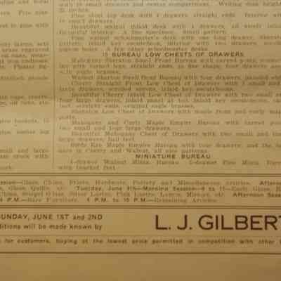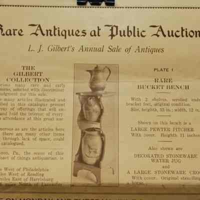 CAT, ANTIQUES, 1929, PA. L.J. GILBERT'S ANNUAL SALE OF ANTIQUES. KLEINFELTER'S AUCTION ROOMS. 12 PP ILLUS, 9 1/2" X 12 1/2"Created By