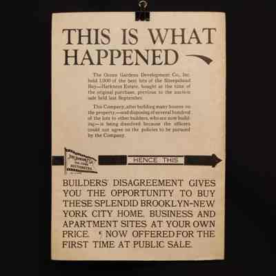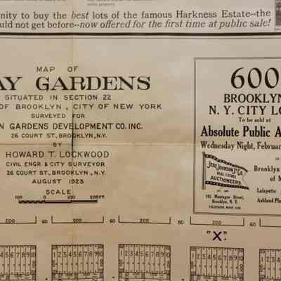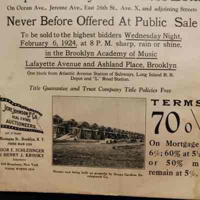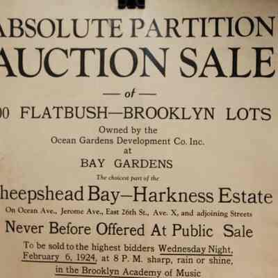 CAT, REAL ESTATE, 1924, NY. ABSOLUTE PARTITION AUCTION SALE OF 600 FLATBUSH-BROOKLYN LOTS. JERE. JOHNSON & CO. AUCTIONEERS. MAP OPENS OUT. 9" X 12" FOLDED.Created By