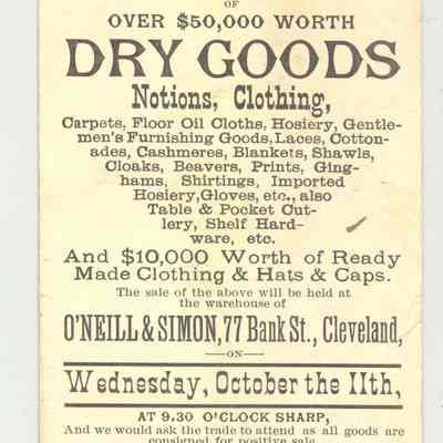 PSCD, 1882, OH. ANOTHER IMMENSE FALL TRADE SALE AT AUCTION OF OVER $50,000 WORTH DRY GOODS. O'NEILL & SIMON, WHOLESALE AUCTIONEERS.Created By