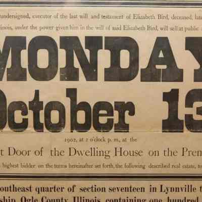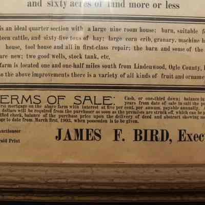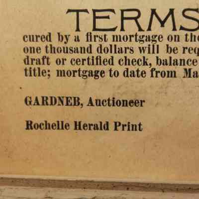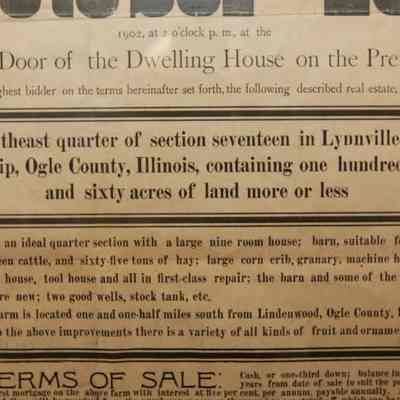FR BROADSIDE, FARM, 1902, IL. LAND, HOUSE, BARN. GARDNER, AUCTIONEER. 16 1/2" X 21 1/2"