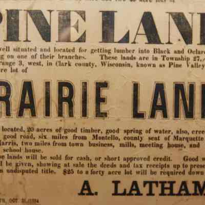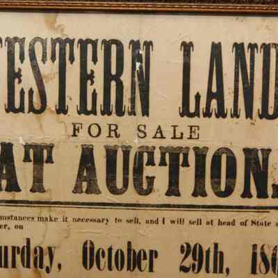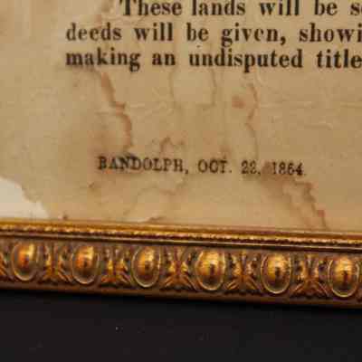FR BROADSIDE, LAND, 1864, RANDOLPH. WESTERN LANDS FOR SALE AT AUCTION. PINE LAND, PRAIRIE LAND. SIGNED A. LATHAM. 14 1/2" X 16"Created By
