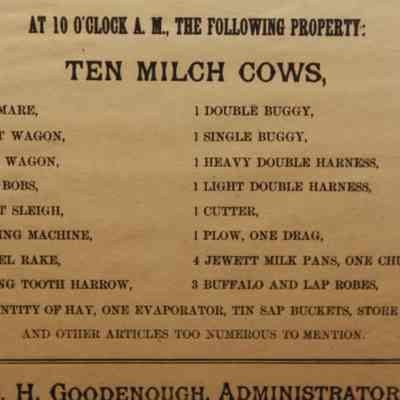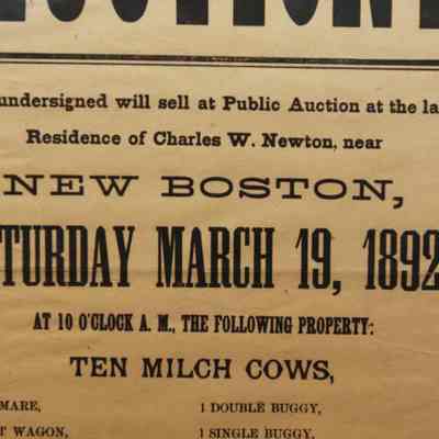 FR BROADSIDE, FARM, 1892, NEW BOSTON. AUCTION! TEN MILCH COWS, MARE, EQUIPMENT. O.H. GOODENOUGH, ADMINISTRATOR 13 1/4" X 16 1/2"Created By