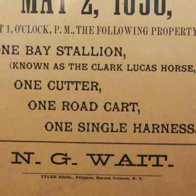 FR BROADSIDE, HORSE, 1896, NY. AUCTION! N.G. WAIT, AUCTIONEER. 10" X 12"