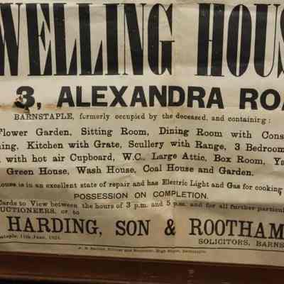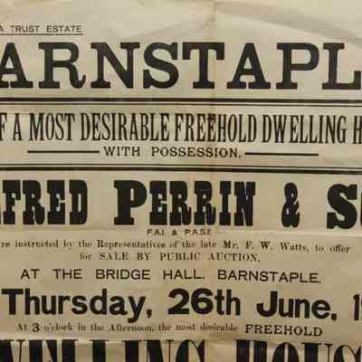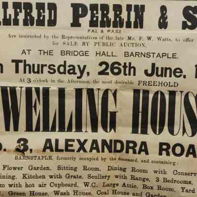 FR BROADSIDE, REAL ESTATE, 1924, BARNSTAPLE. "SALE OF A MOST DESIRABLE FREEHOLD DWELLING HOUSE WITH POSSESSION. ALFRED PERRIN & SON" AUCTIONEERS. 22 3/4" X 30 3/4"Created By