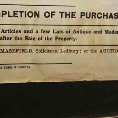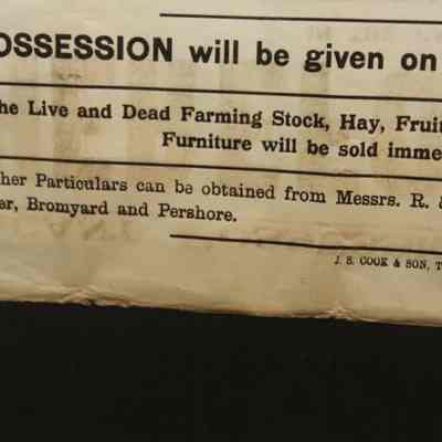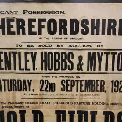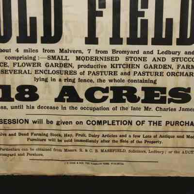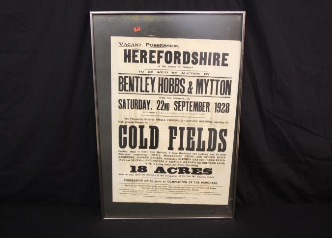 FR BROADSIDE, REAL ESTATE, 1928, HEREFORDSHIRE, ENGLAND. "VACANT POSSESSION. TO BE SOLD BY AUCTION BY BENTLEY, HOBBS & MYTTON" 20" X 28"Created By