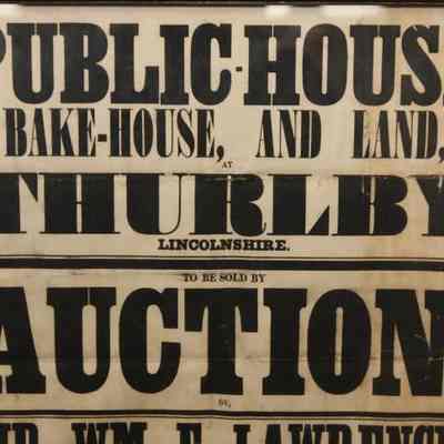 FR BROADSIDE, REAL ESTATE, 1850, LINCOLNSHIRE, ENGLAND. "PUBLIC-HOUSE BAKE-HOUSE, AND LAND AT THURLBY". MR. WM. E. LAWRENCE, AUCTIONEER. 16 1/2" X 20 1/2"Created By