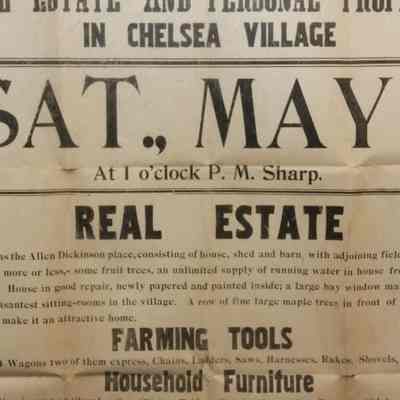 FR BROADSIDE, REAL ESTATE, 1916, VT. AUCTION SALE OF REAL ESTATE & PERSONAL PROPERTY IN CHELSEA VILLAGE. F.J. ACKERMAN, AUCTIONEER. 23" X 29"Created By