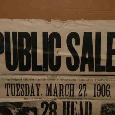 FR BROADSIDE, FARM, 1906. "PUBLIC SALE! 28 HEAD OF LIVESTOCK, FARMING MACHINERY, HOUSEHOLD GOODS" ILLUS, 25 3/4" X 31 3/4"Created By