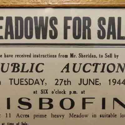 FR BROADSIDE, REAL ESTATE, 1944, MEADOWS FOR SALE AT LISBOFIN. J.J. COALTER, AUCTIONEER. 13" X 11"Created By
