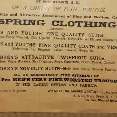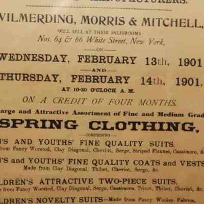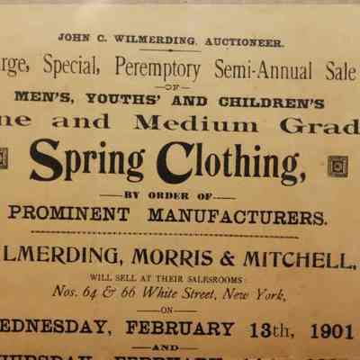 FR BROADSIDE, 1901, CLOTHING, NY. JOHN C. WILMERDING, AUCTIONEER. WILMERDING, MORRIS & MITCHELL. 11 3/4" X 14 1/2"Created By