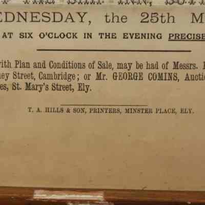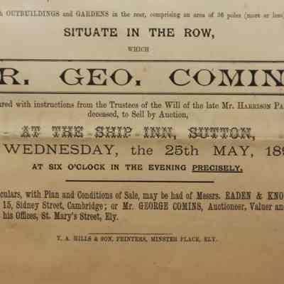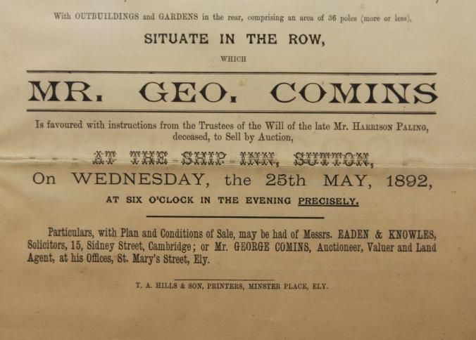 FR BROADSIDE, 1892, REAL ESTATE, SUTTON. PARTICULARS WITH PLAN AND CONDITIONS OF SALE, BEER HOUSE AND OUTBUILDINGS. MR. GEO. COMINS, AUCTIONEER. 10 1/4" X 15 1/4"Created By
