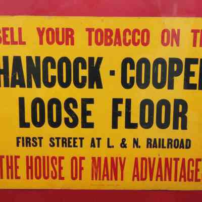 FR SIGN, SELL YOUR TOBACCO ON THE HANCOCK-COOPER LOOSE FLOOR, FIRST STREET AT L. & N. RAILROAD, THE HOUSE OF MANY ADVANTAGES. FRANCIS & LUSKY, NASHVILLE, TN. 24" X 18"Created By