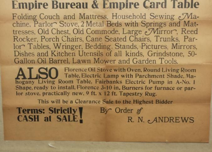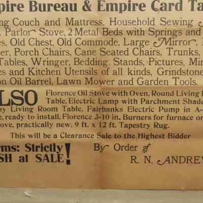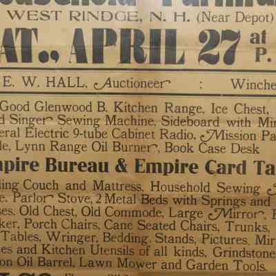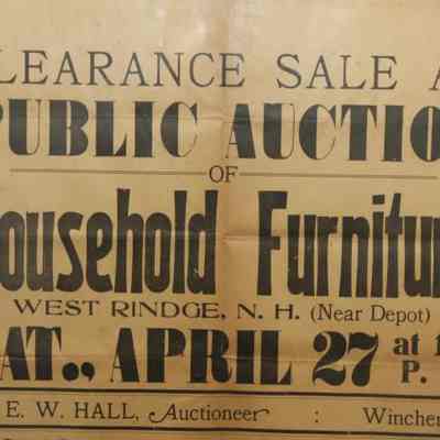 FR BROADSIDE, FURNITURE, NH. CLEARANCE SALE AT PUBLIC AUCTION OF HOUSEHOLD FURNITURE BY E.W. HALL, AUCTIONEER. 18 1/4" X 24 1/4"Created By