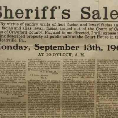 FR BROADSIDE, 1909, REAL ESTATE, PA. SHERIFF'S SALES. 13" X 27 1/4"