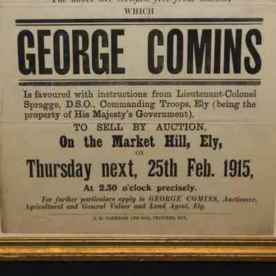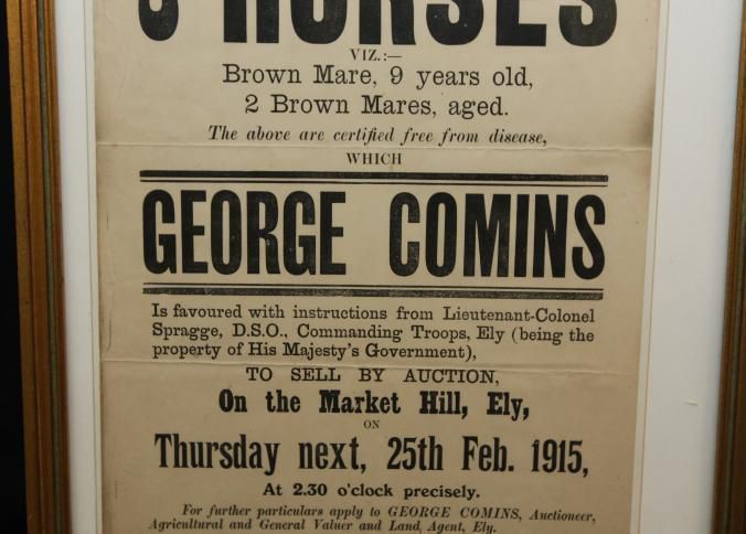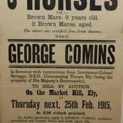 FR BROADSIDE, HORSE, 1915, ELY. THURSDAY NEXT, MARKET HILL. SALE OF 3 HORSES, GEORGE COMINS, AUCTIONEER. 15 1/4" X 19 1/4"Created By