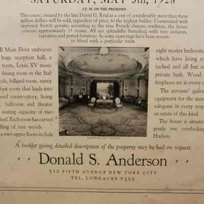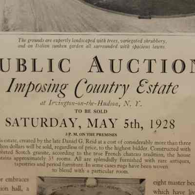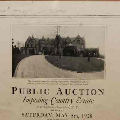 FR AD, REAL ESTATE, 1928, NY. PUBLIC AUCTION IMPOSING COUNTRY ESTATE AT IRVINGTON-ON-THE-HUDSON, NY. DONALD ANDERSON, AUCTIONEERS. 12 1/2" X 15"Created By