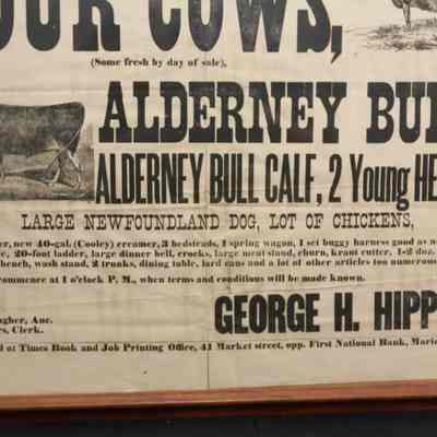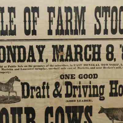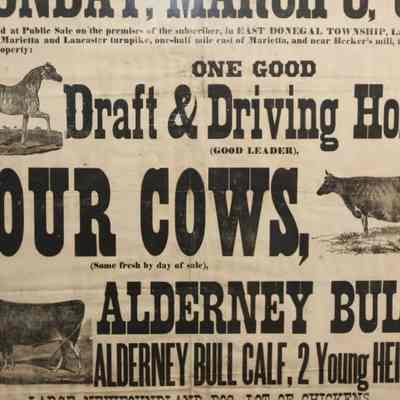 FR BROADSIDE, LIVESTOCK, 1886, PA. SALE OF FARM STOCK! ONE GOOD DRAFT AND DRIVING HORSE, FOUR COWS, ALDERNEY BULL! L.D. GALLAGHER, AUCTIONEER. ILLUS, 27" X 30 1/2"Created By