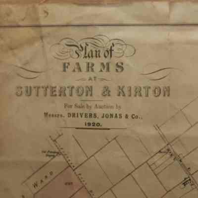 FR MAP, 1920. PLAN OF FARMS AT SUTTERTON & KIRTON FOR SALE BY AUCTION BY MESSRS DRIVERS, JONAS & CO. 20" X 16"Created By