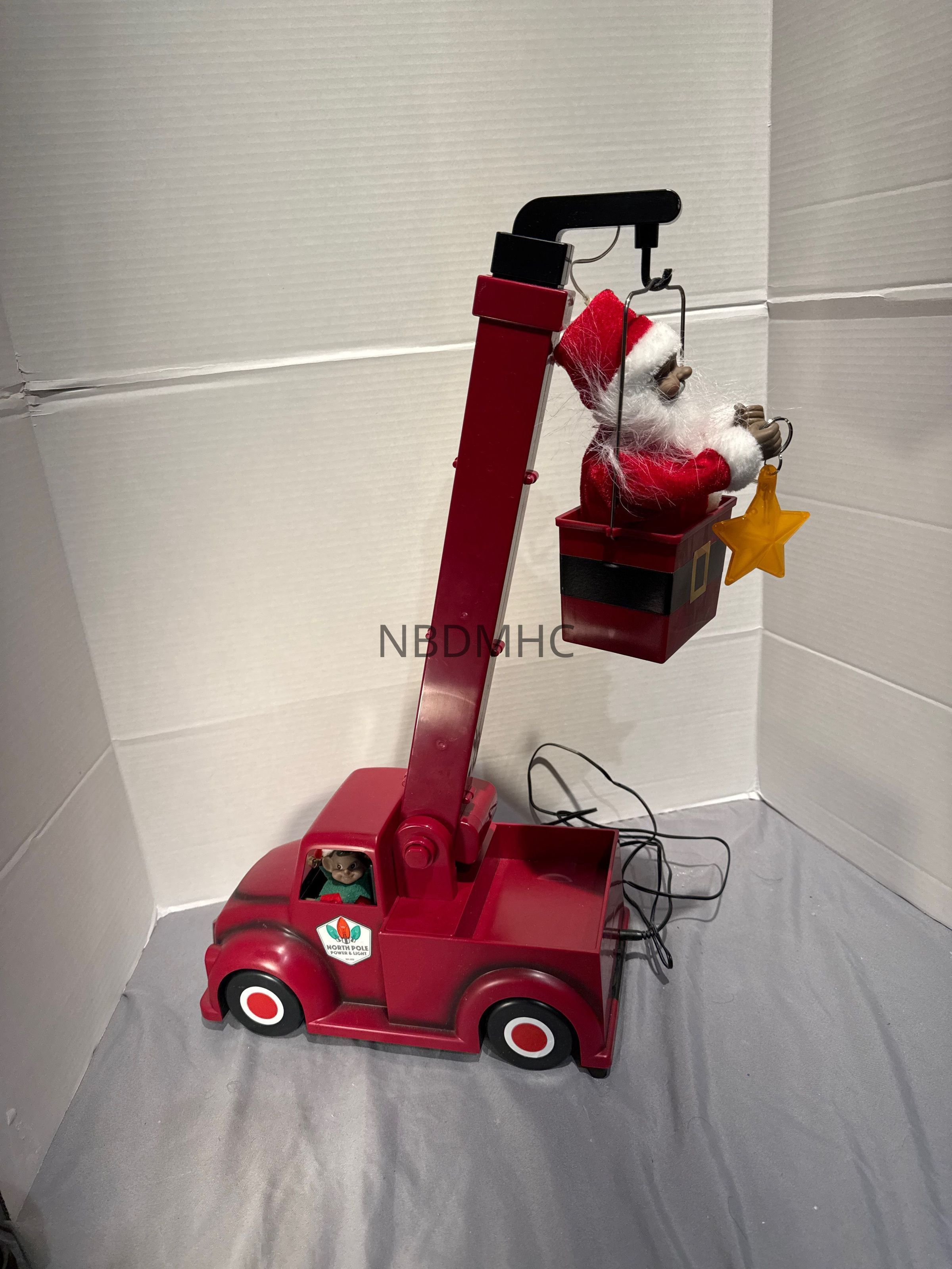 22x12 inch lift truck with Elf in driver’s seat and Santa in bucket holding lighted star. Guinness 567