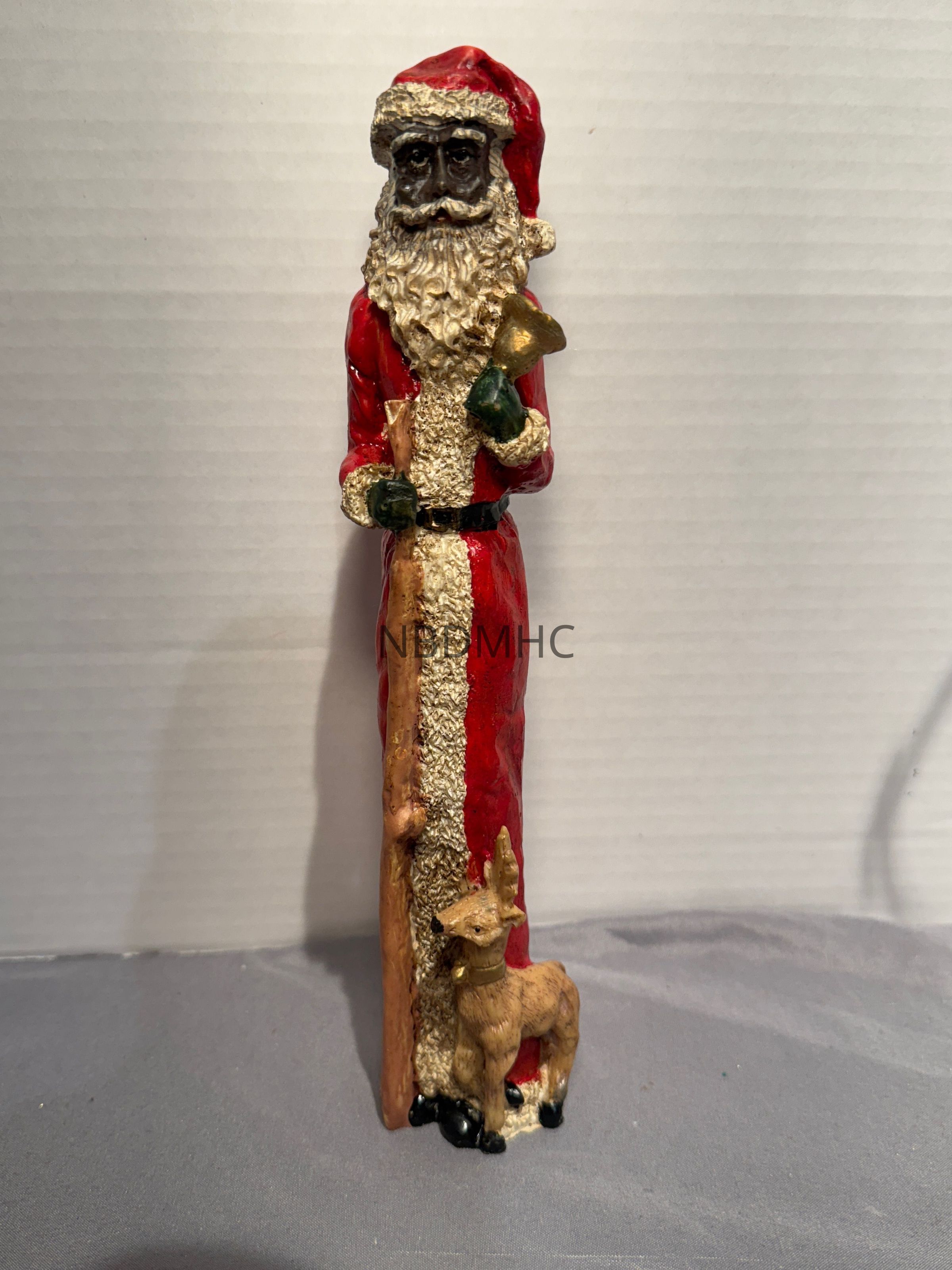 9 1/2 inch “Tall Santa” figurine with small reindeer. Holding bell and walking stick. Guinness 816