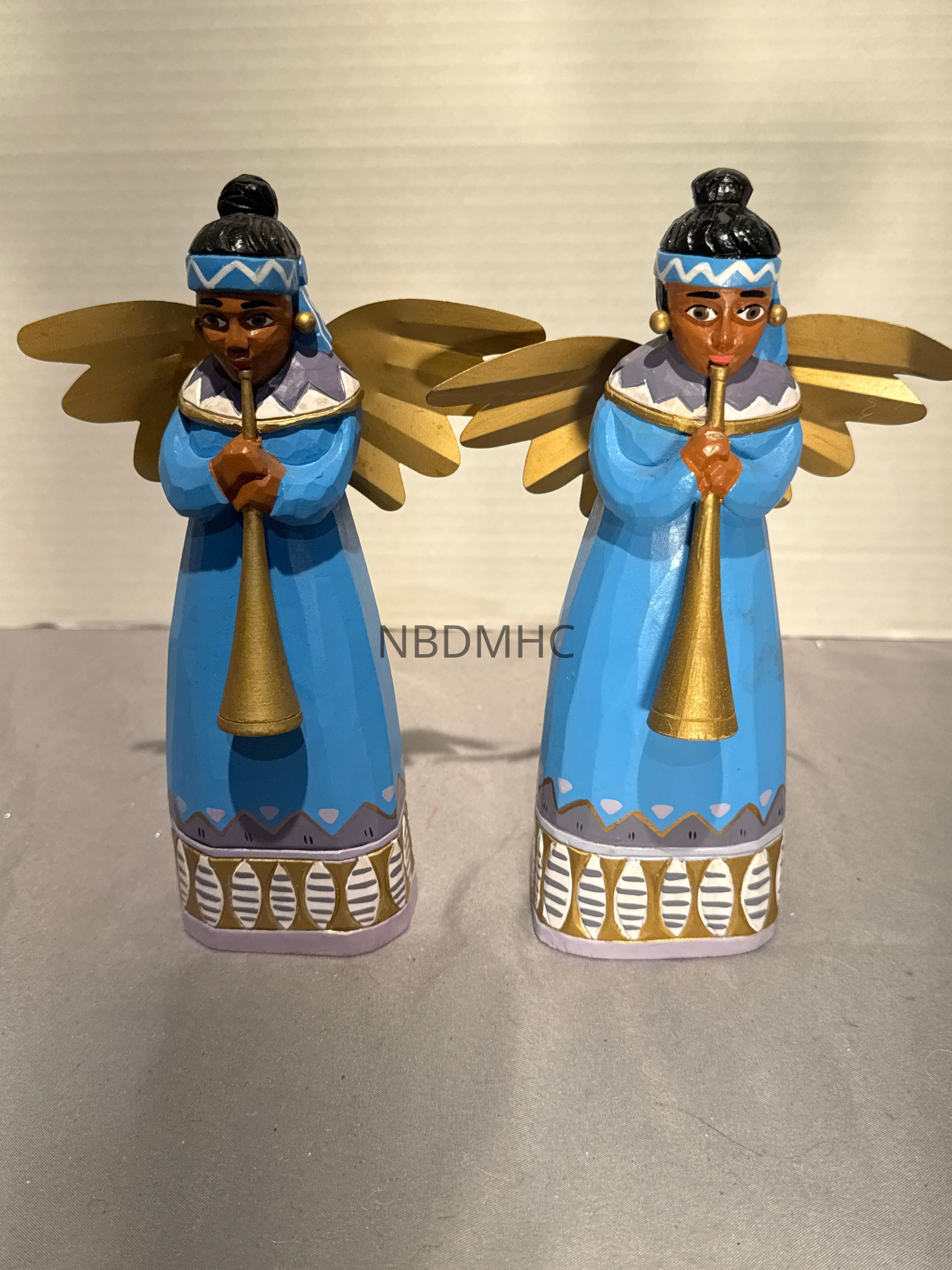 8 inch wooden Native American angels, blue and gold. Guinness 256