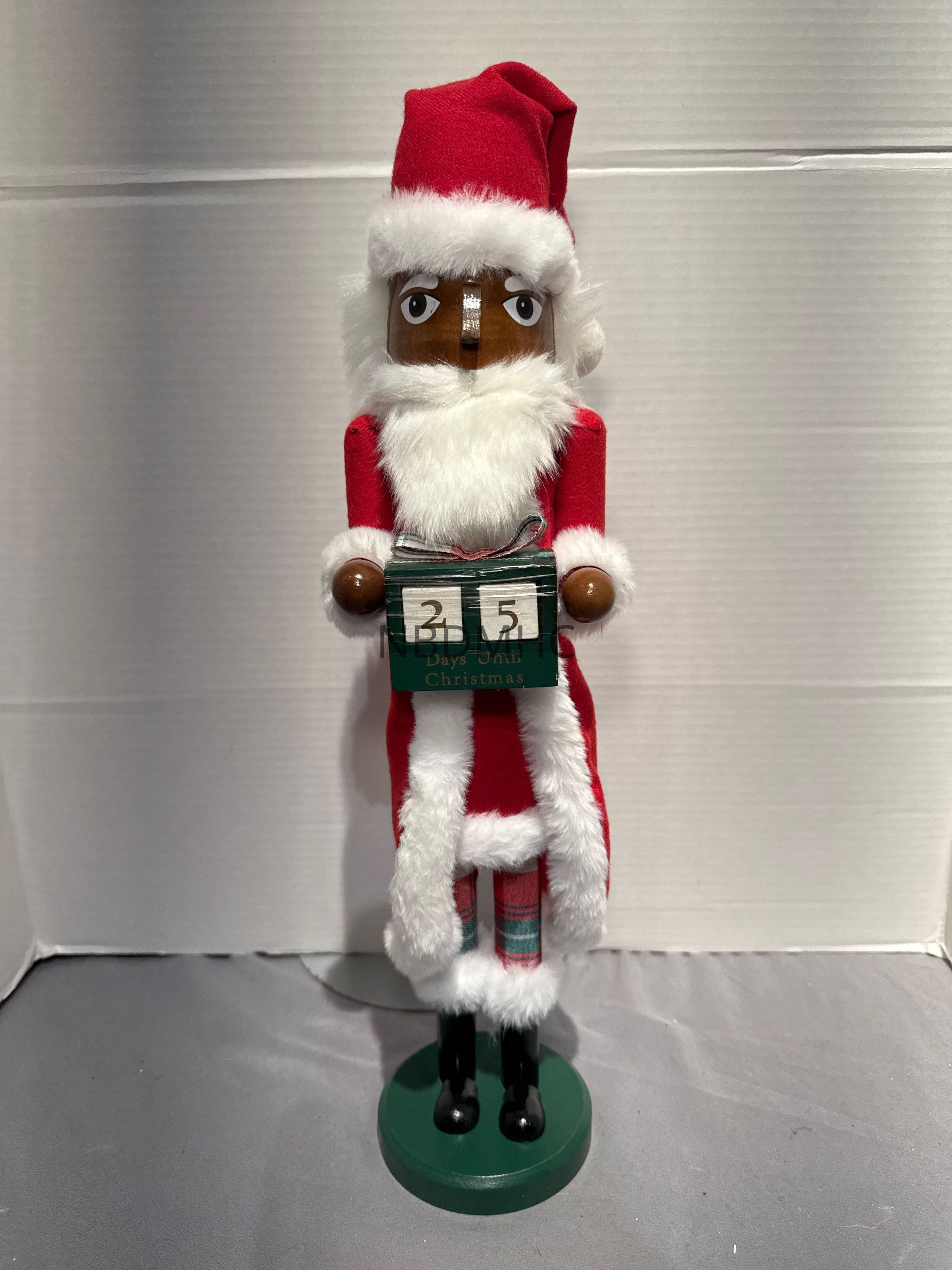 19" Christmas Countdown Santa Nutcracker wearing a red Santa suit with white faux fir trim.