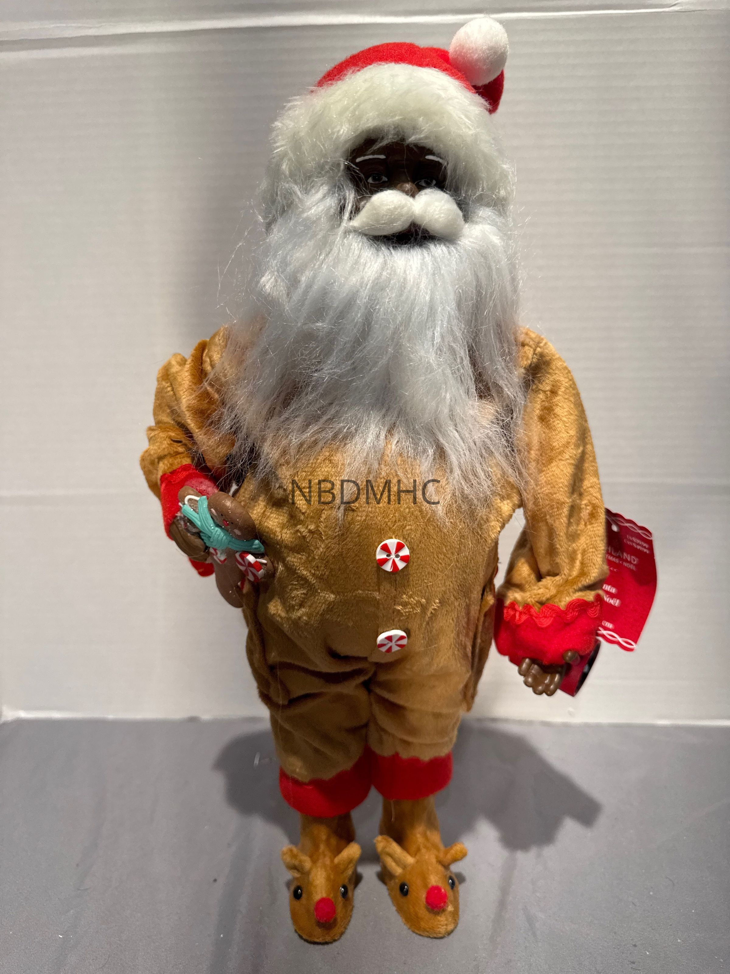 16-1/2 Tan onesie with bunny feet holding a gingerbread cookie and hot cocoa. Guinness 118