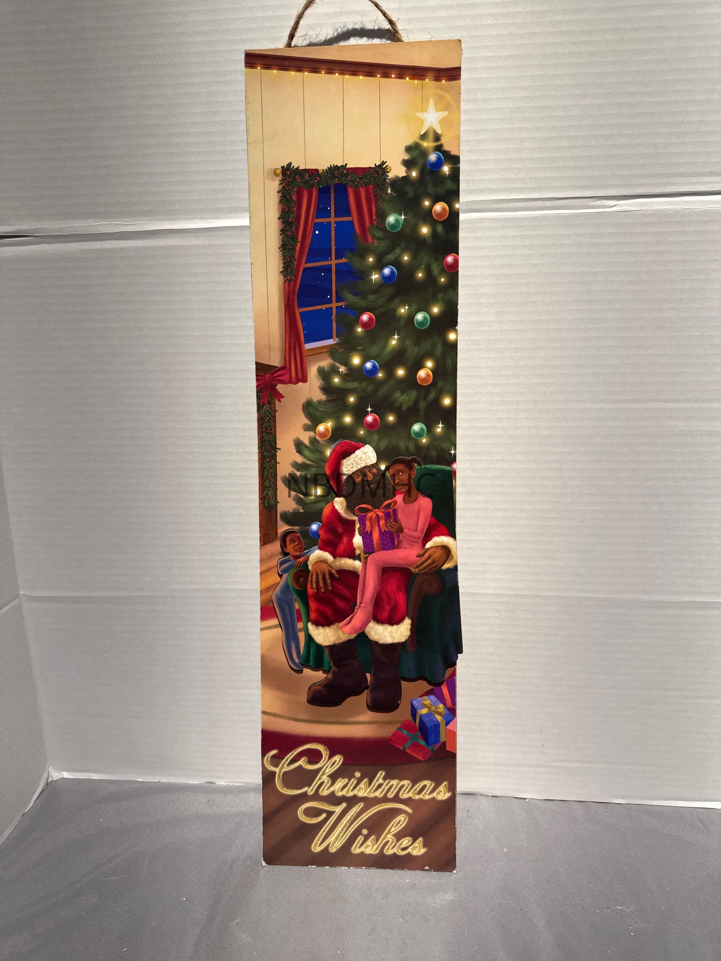 24 inch Christmas Wishes hanging plaque with Santa, girl on lap, boy by chair. Guinness 564