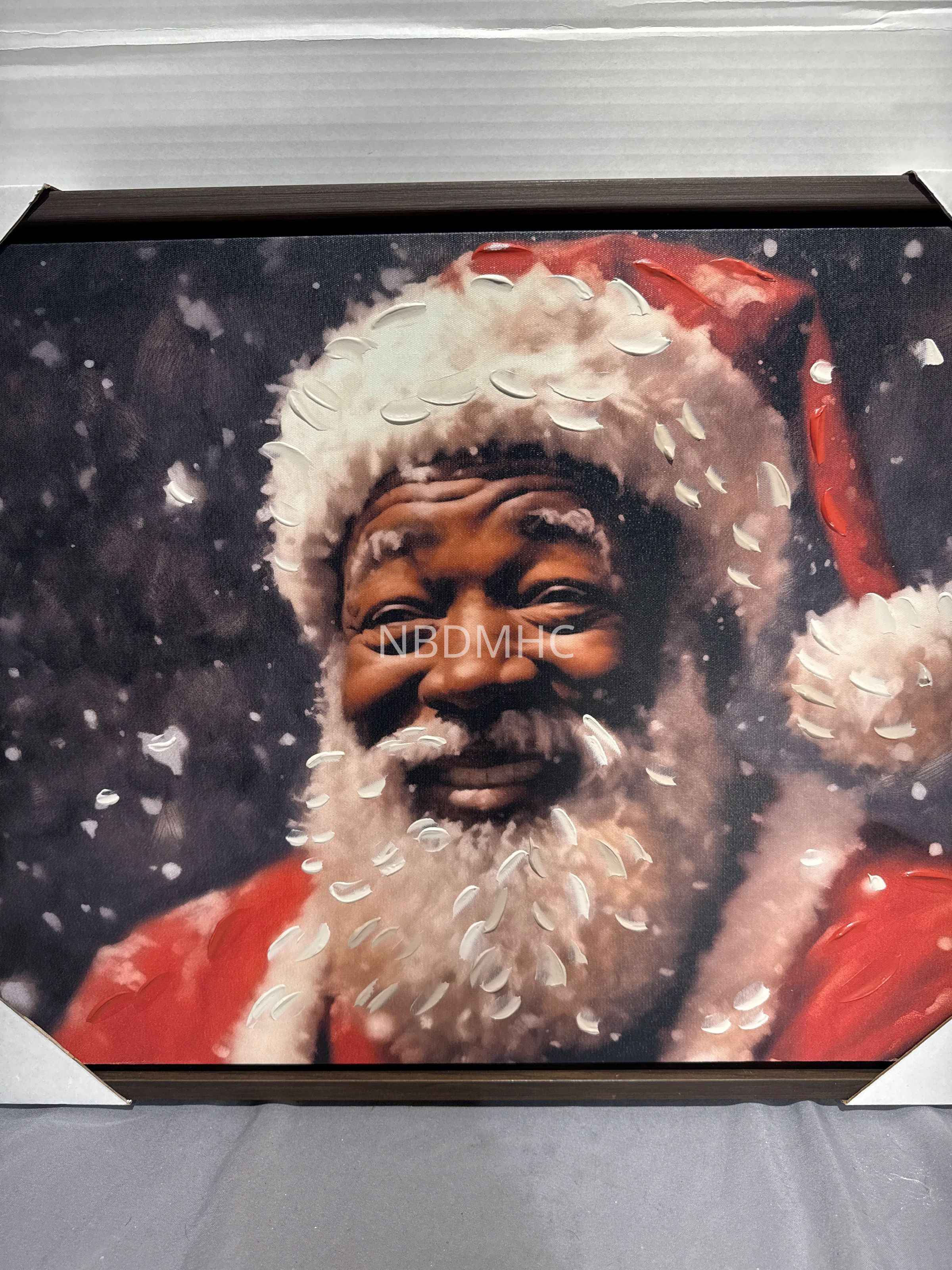 16 1/2 x22 inch print on canvass of laughing Santa. Head and shoulders. Dark background. White paint flecks have been added. Guinness 642