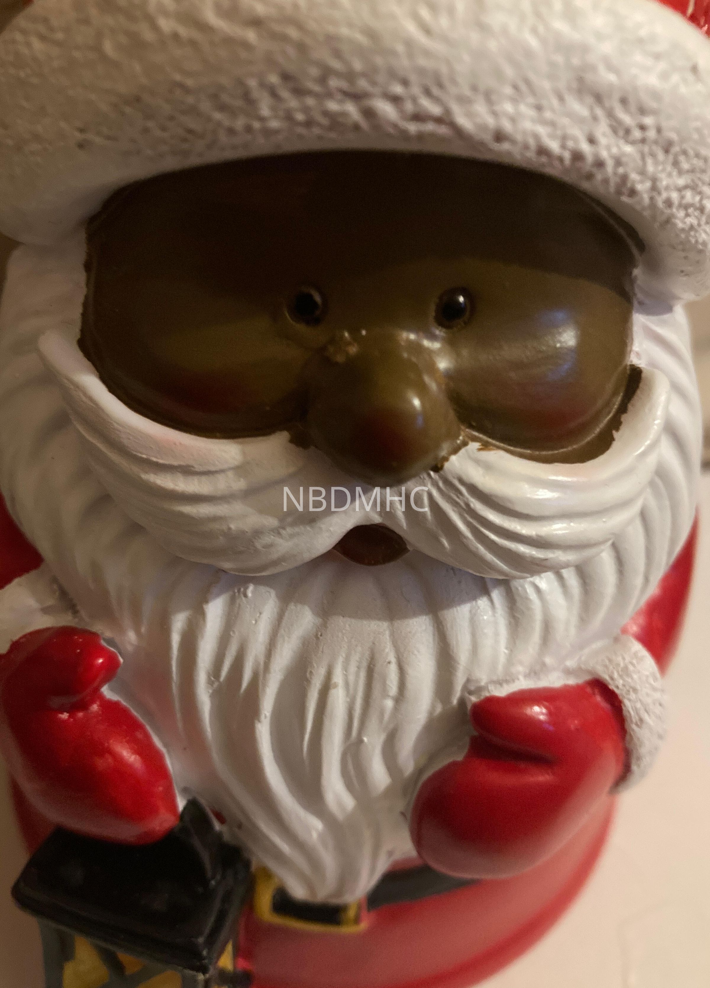 10” Christmas Noel Peppermint Lane Wooden figurines red white Santa carved hat facial features carried lantern black & yellow. Guinness 18