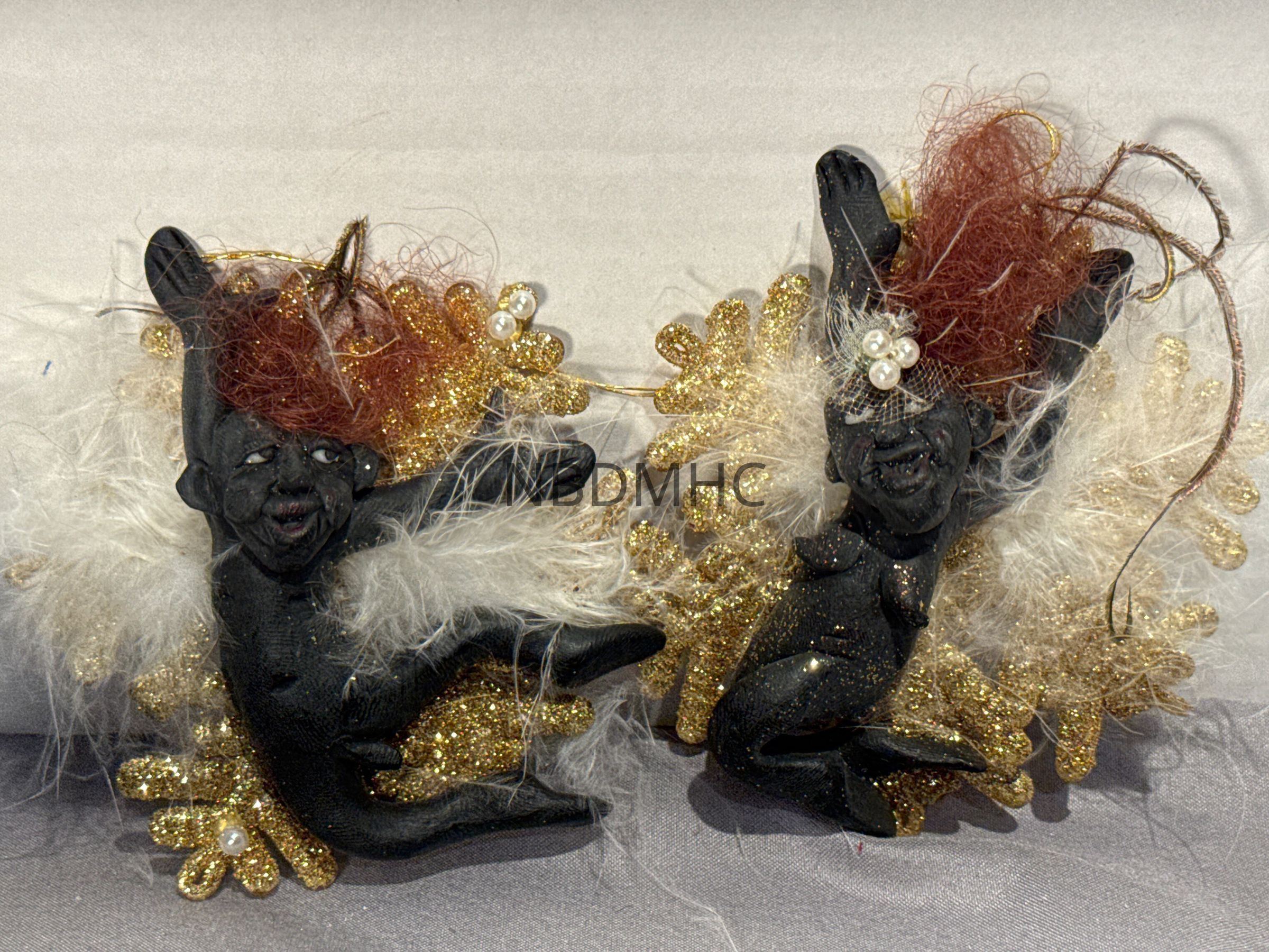 African dancing angels on a snowflake ornament. Guinness 796 girl Guinness 797 boy.