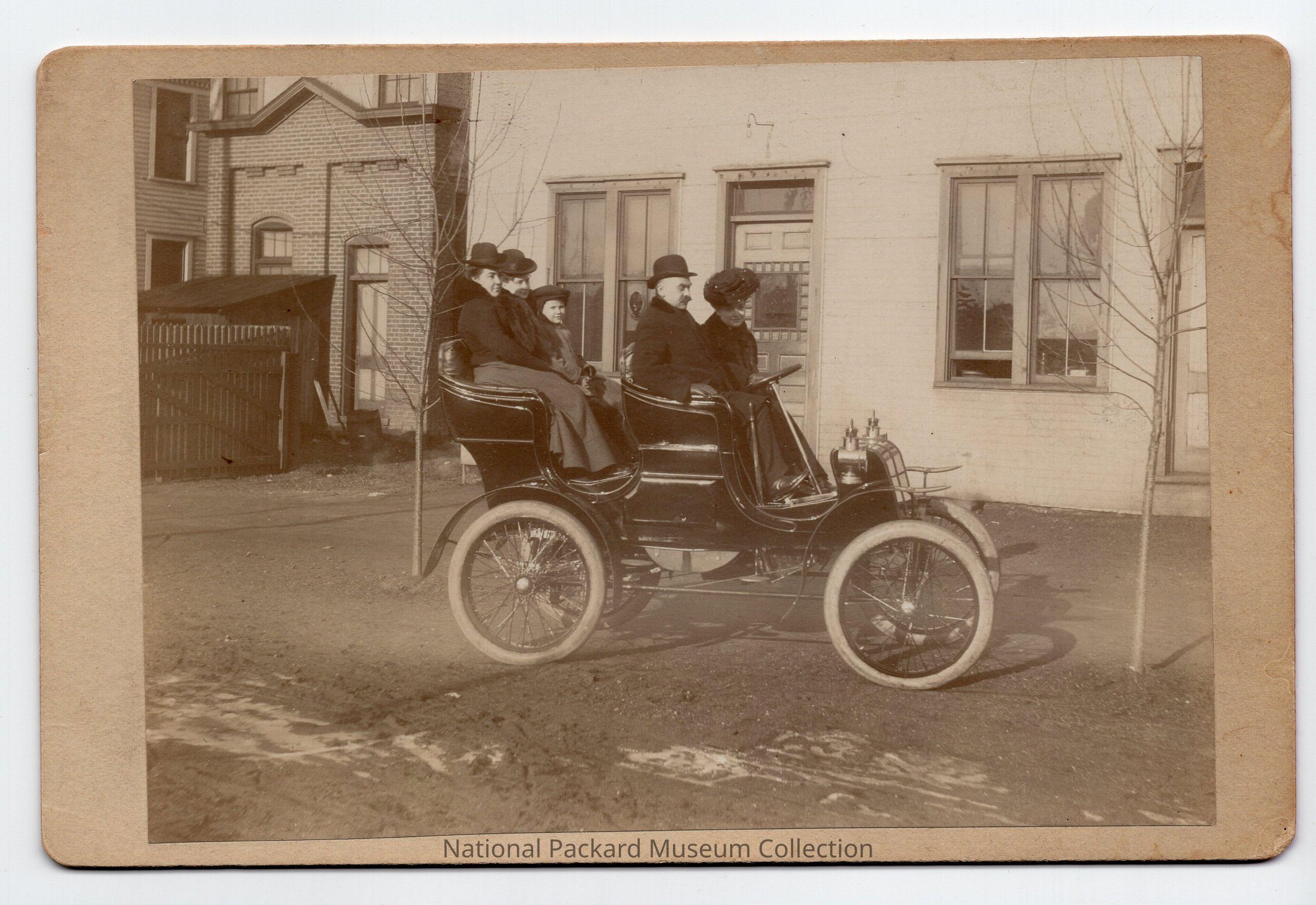 Packard Model C, pencil writing on back says "Packard Model C Near plant in Warren office girls in auto"