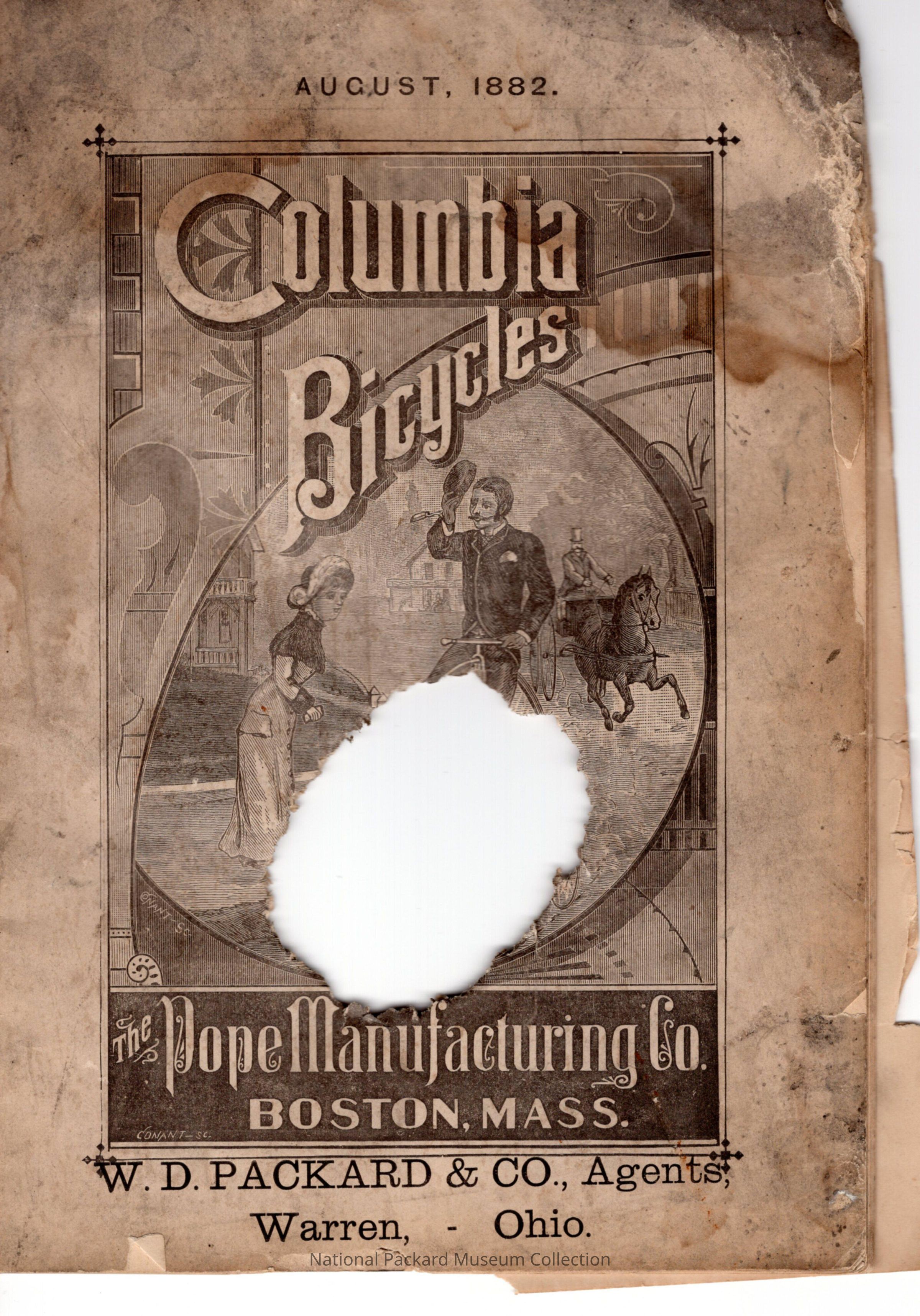 1882 pamphlet from Columbia Bicycles Company, marked with W.D. Packard & Co., Agent, Warren, Ohio.