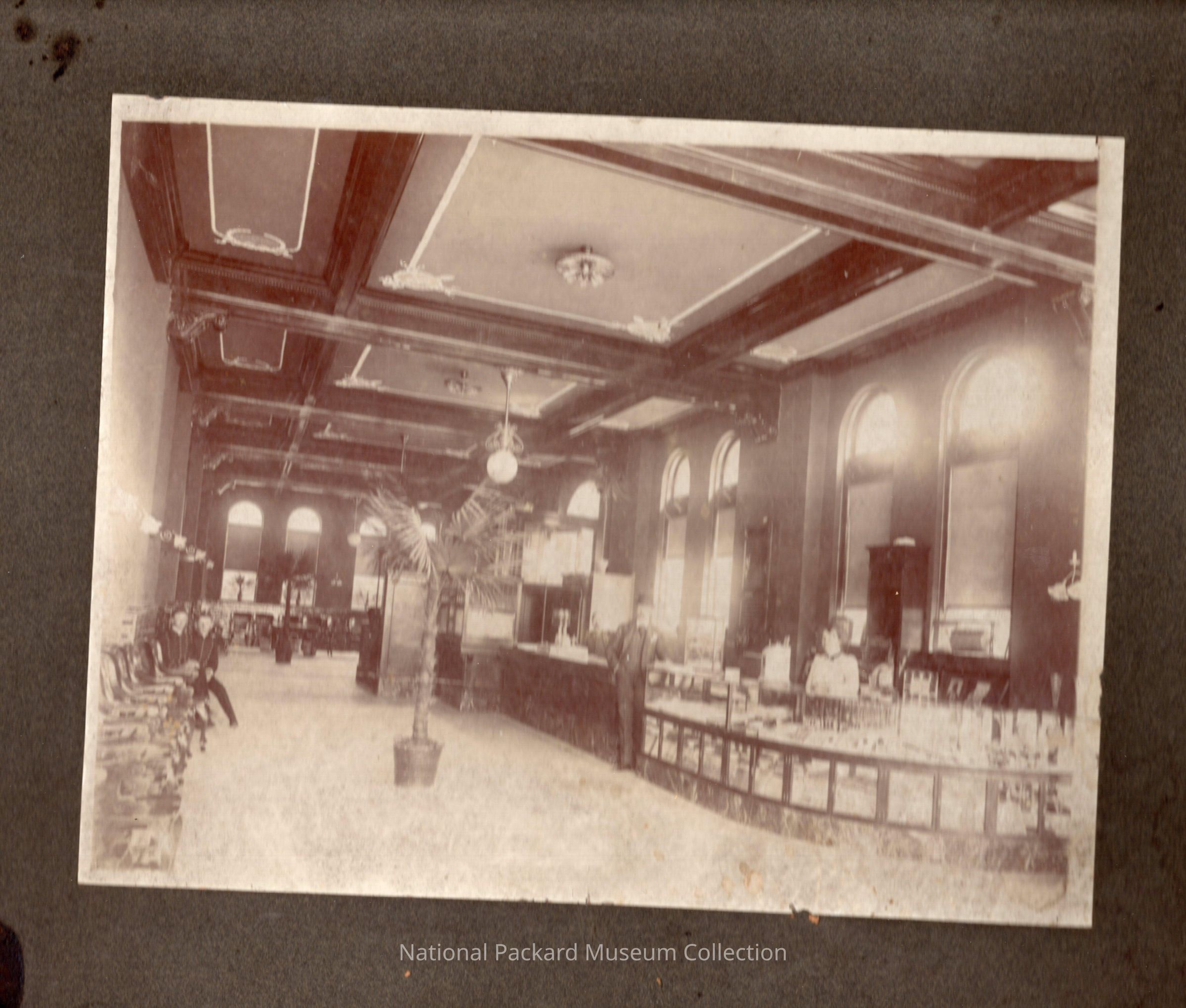 Photo of hotel lobby, possibly the Park Hotel in the late 1800's