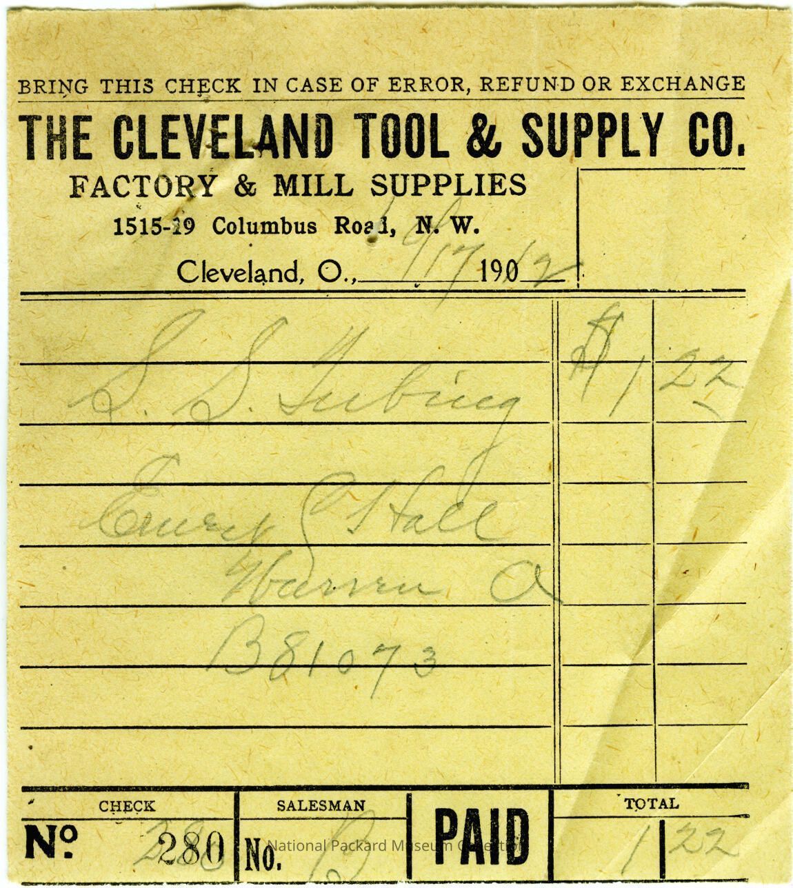 Letter from the Cleveland Tool and Supply Company