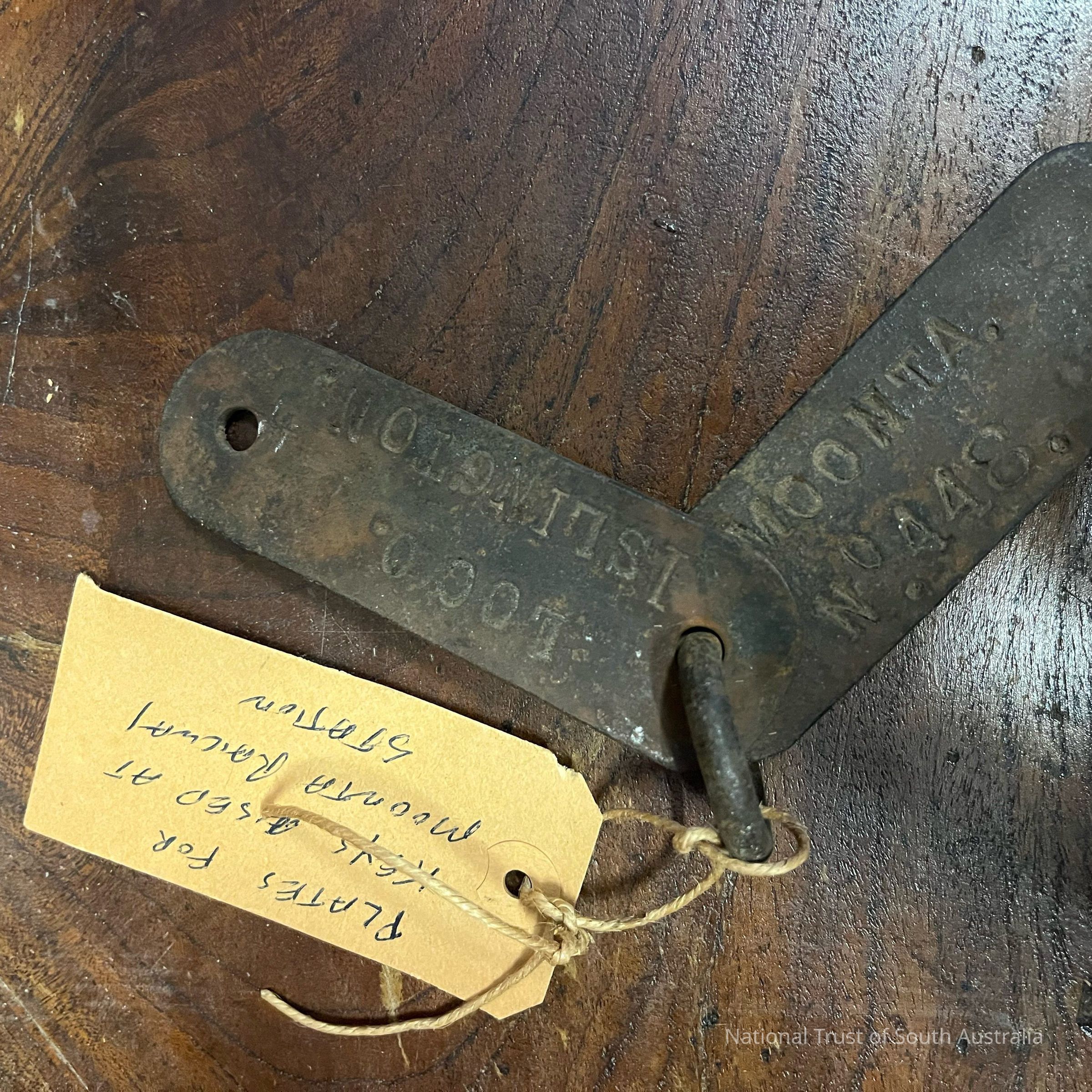 Pair of key plates used at Moonta Railway Station. Plate 1: LOCO ISLINGTON Plate 2: MOONTA NO. 448 Located Box K4