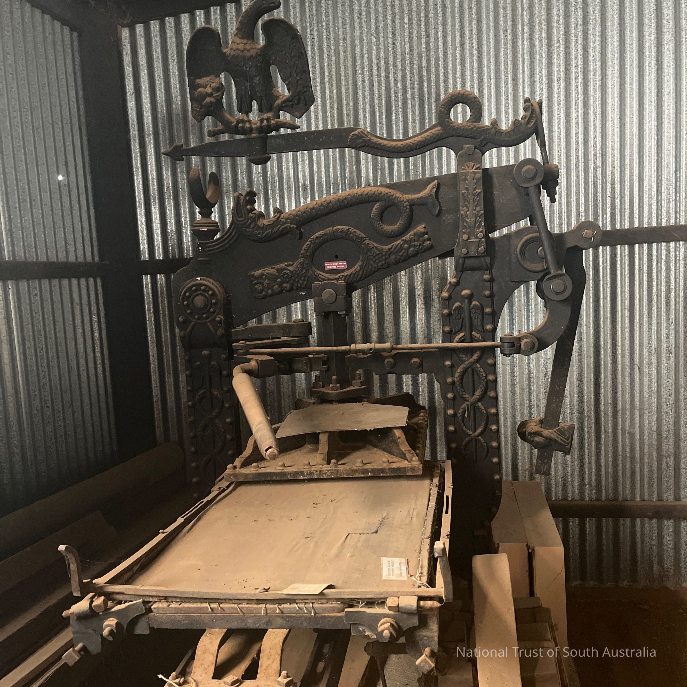 Large printing press with ornate, Eagle headdress.