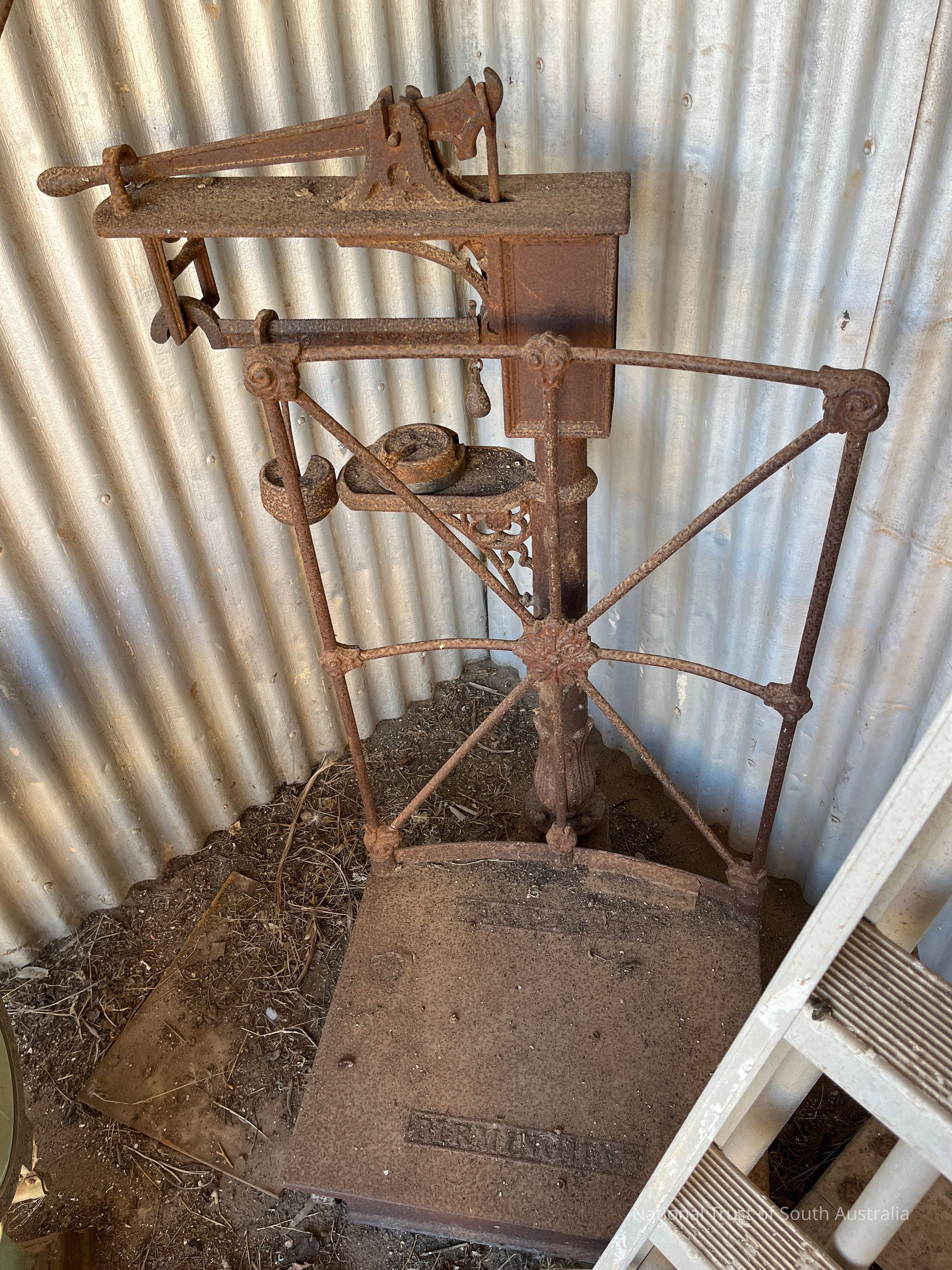 Large metal scale. Items were weighed on the plate at the bottom of the frame.