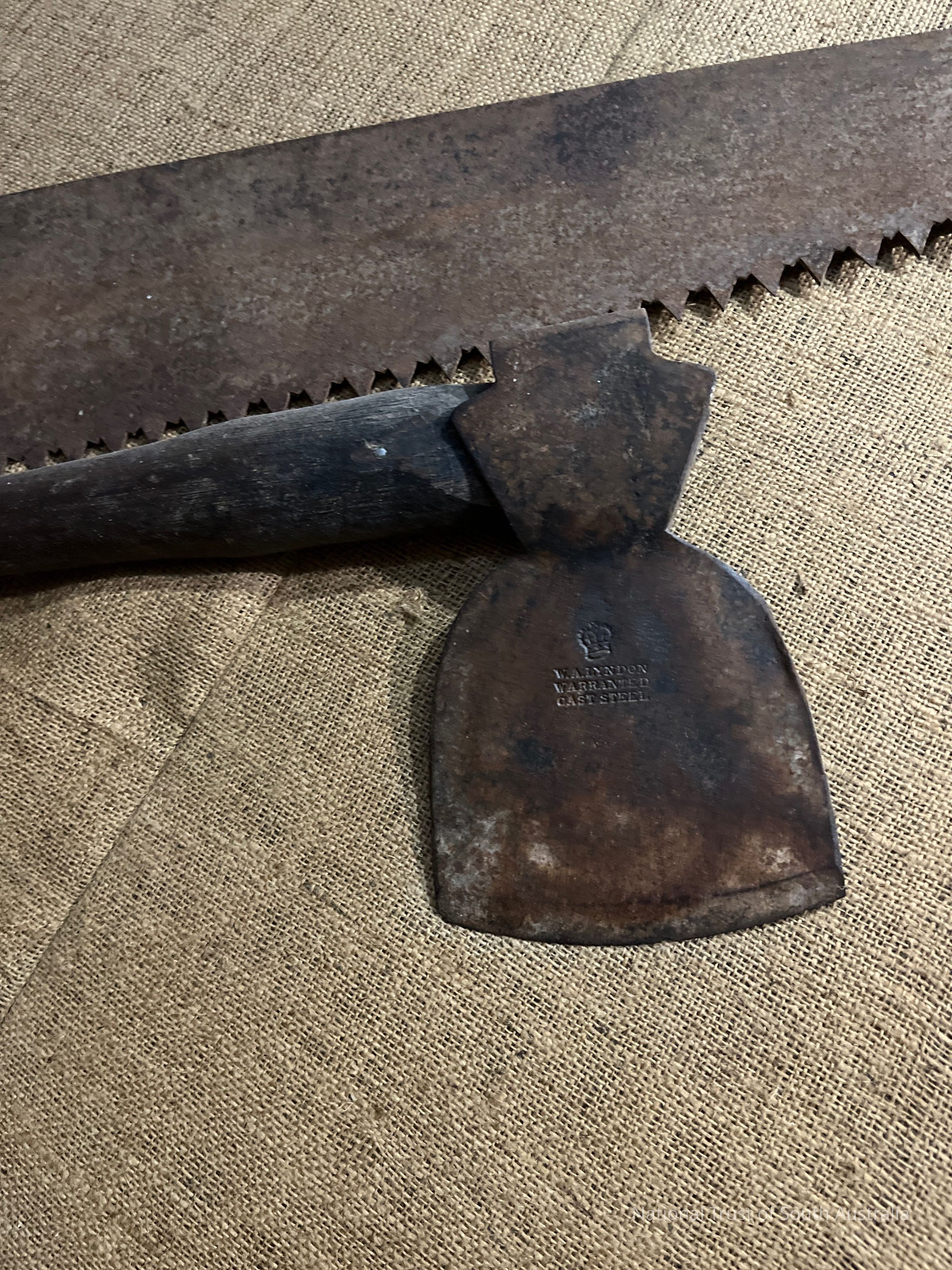 Wooden handled axe. Text inscribed: Waiyndon Warranted Cast Steel