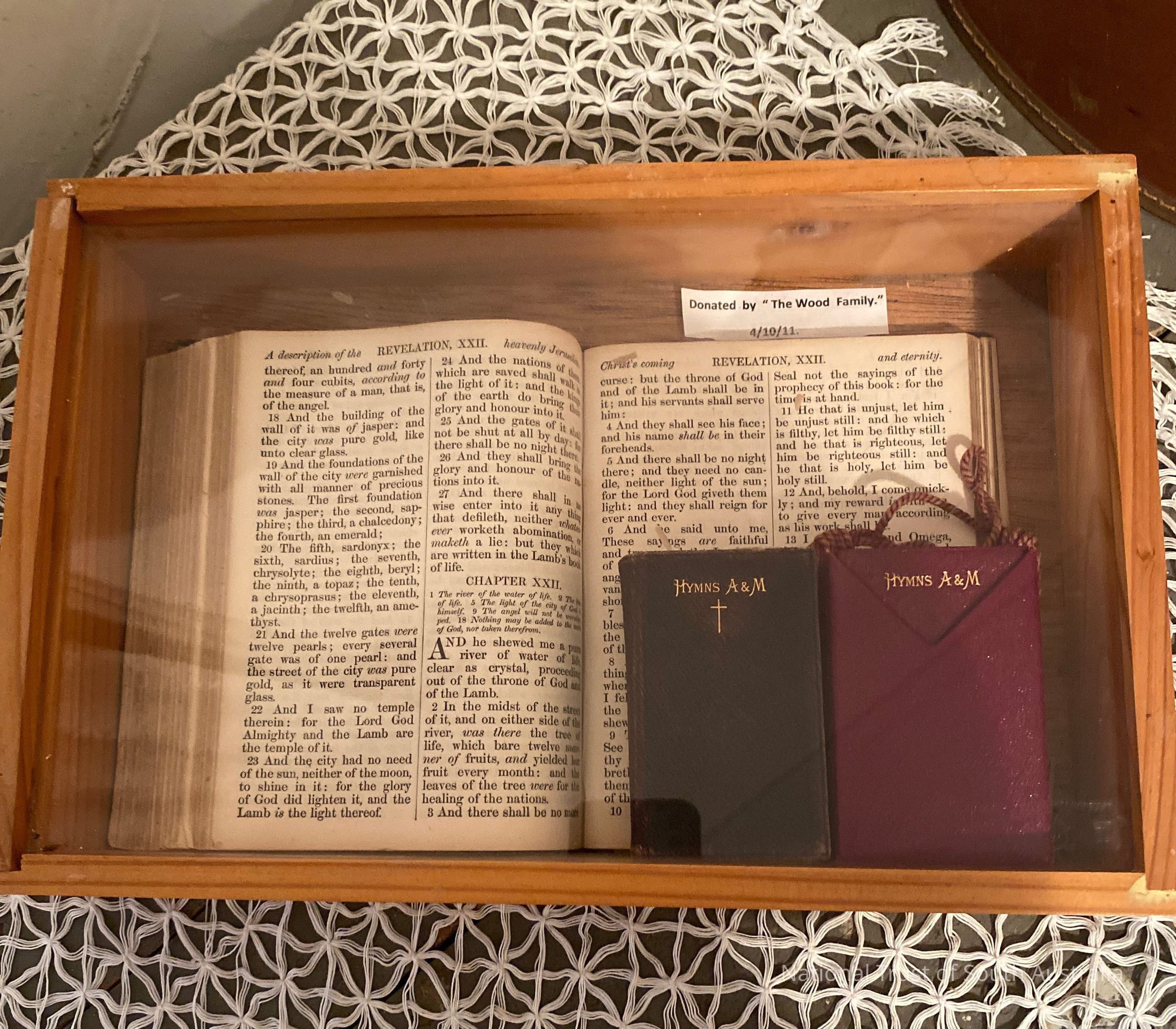 Bible and hymn books in wooden case