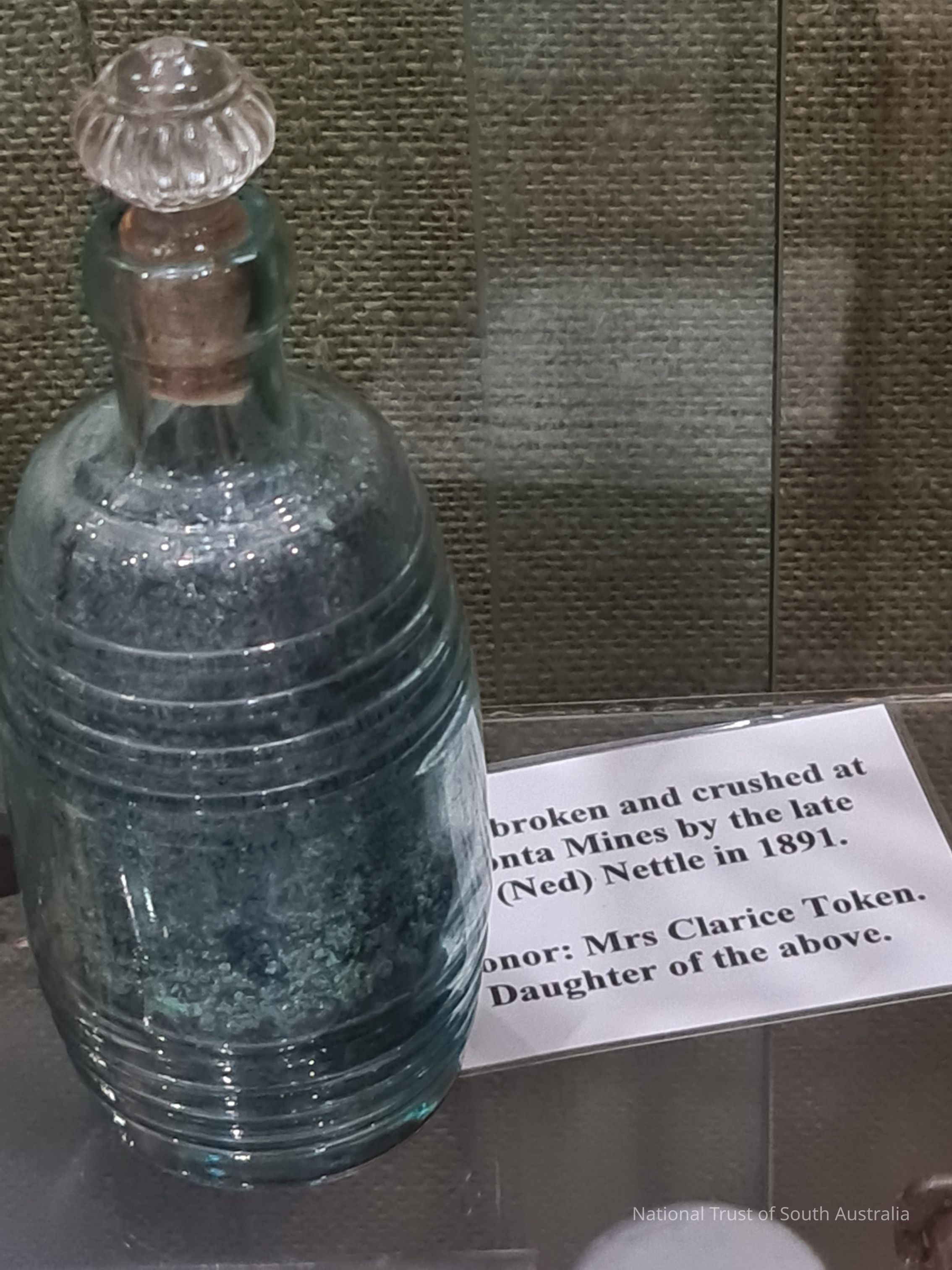Ore crushed in 1891 by Ned Nettle at Moonta Mines. Donated by his daughter Mrs Clarice Token.