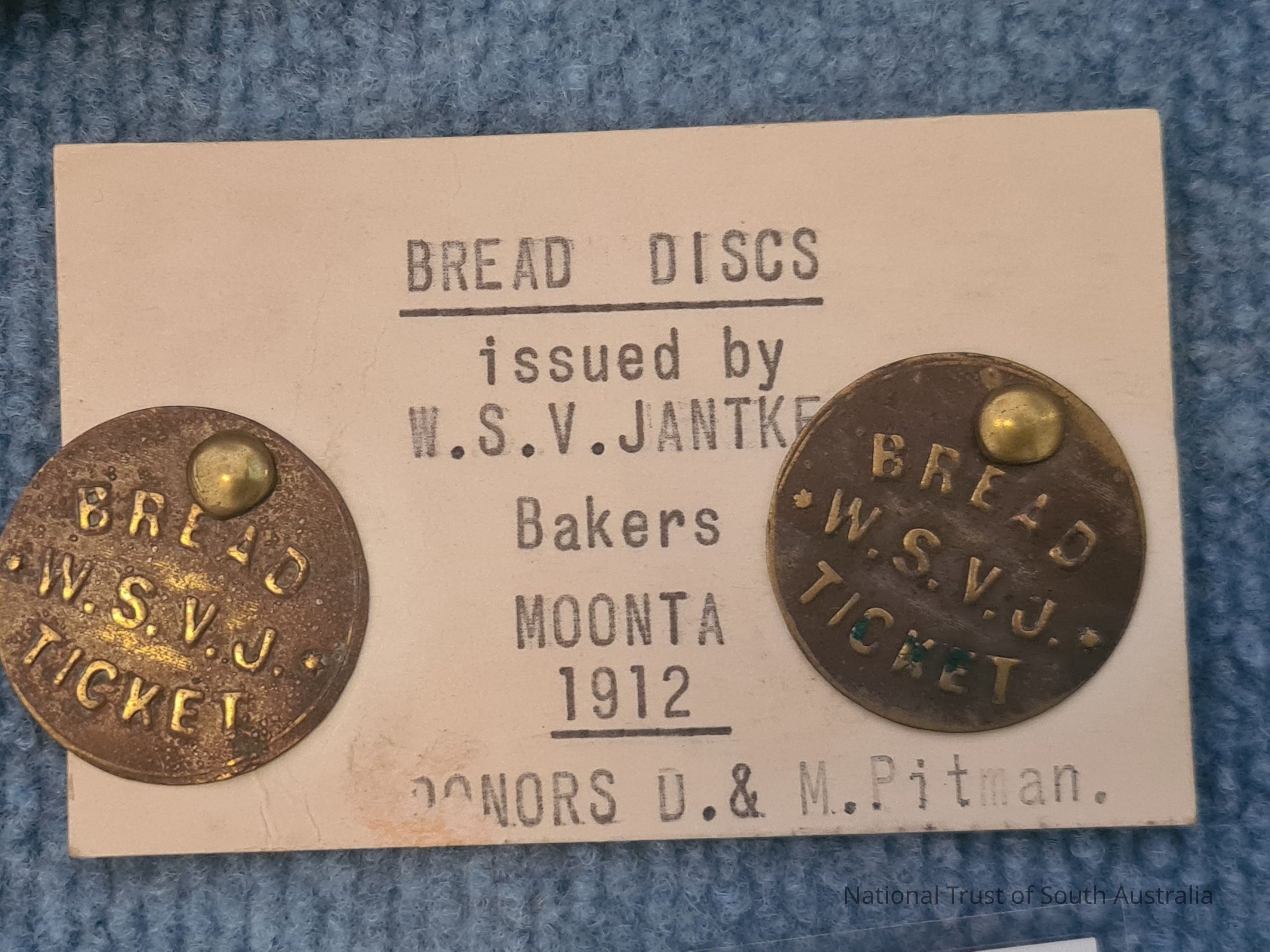Bread Discs. Issued by WSV Jantke (baker) Ellen Street Moonta 1912. Donated by D. and M. Pitman
