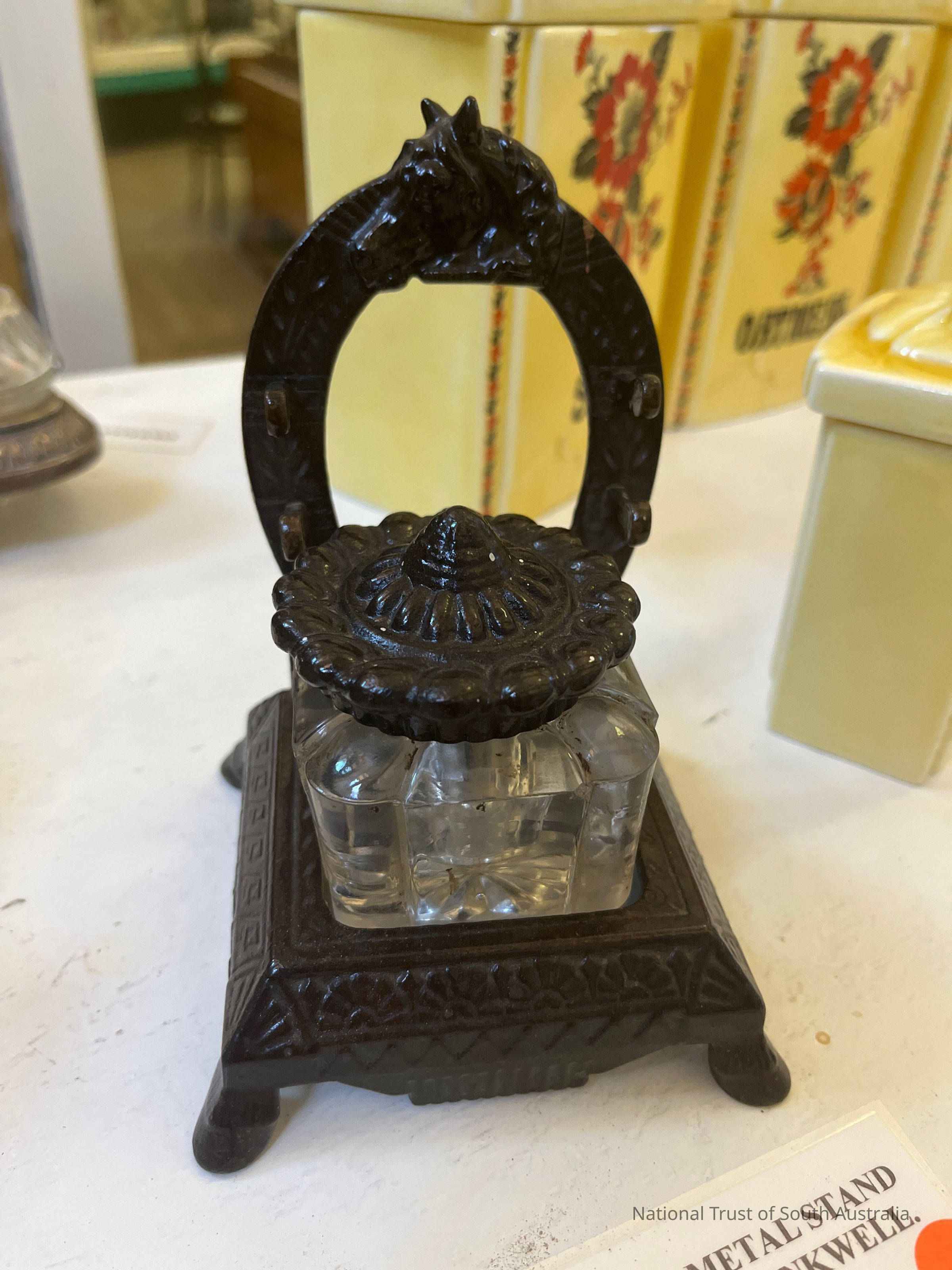Cast Metal Stand and Glass Inkwell