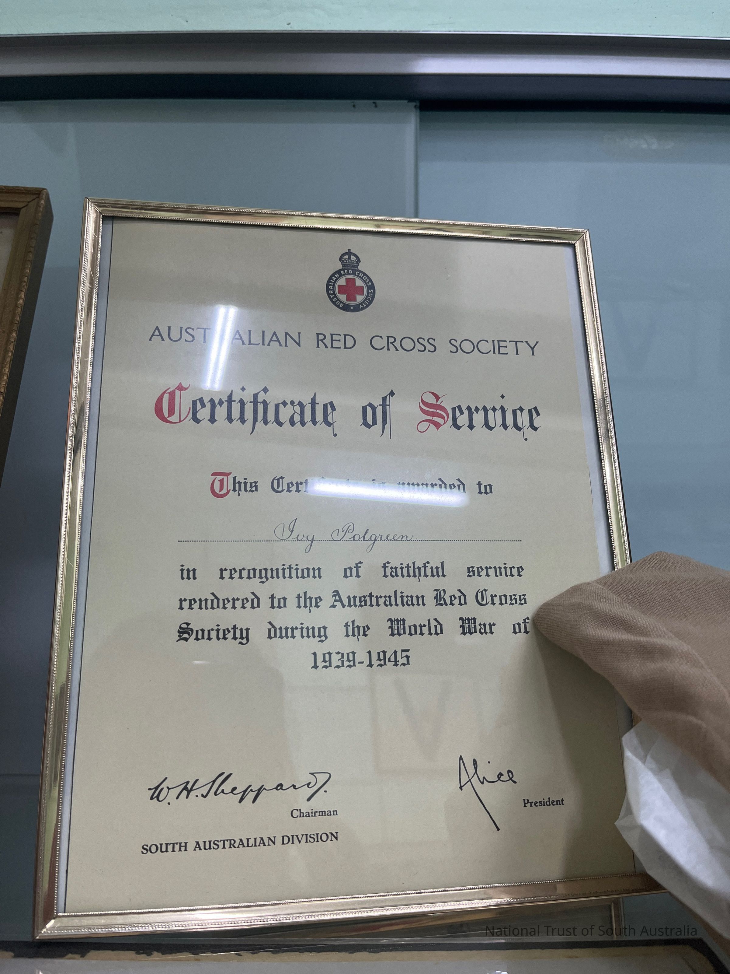 Australian Red Cross Society certificate of service issued to Ivy Polgreen in recognition of faithful service rendered to the Australian Red Cross Society during World War IICollection