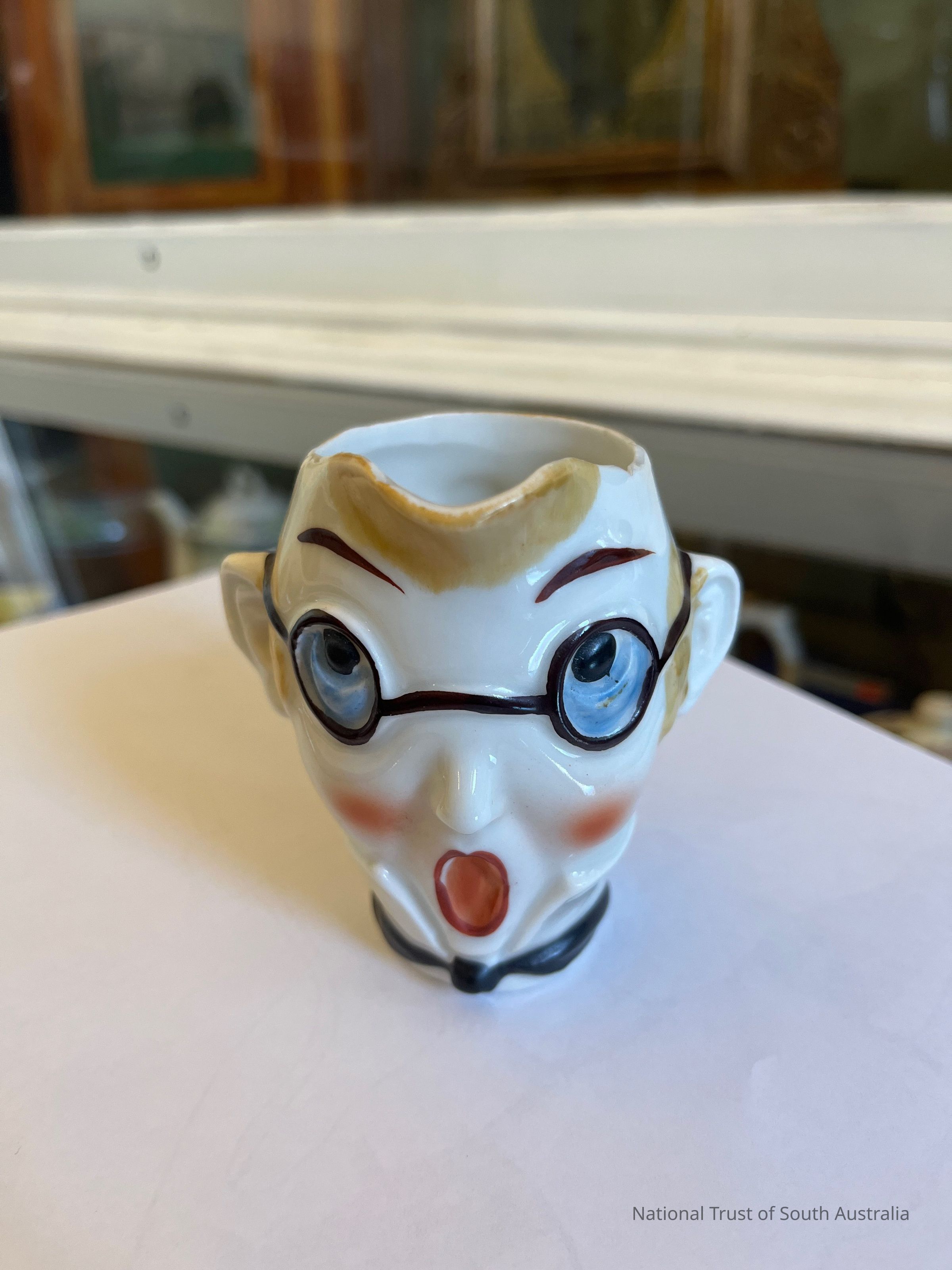 China jug decorated with a man’s face.