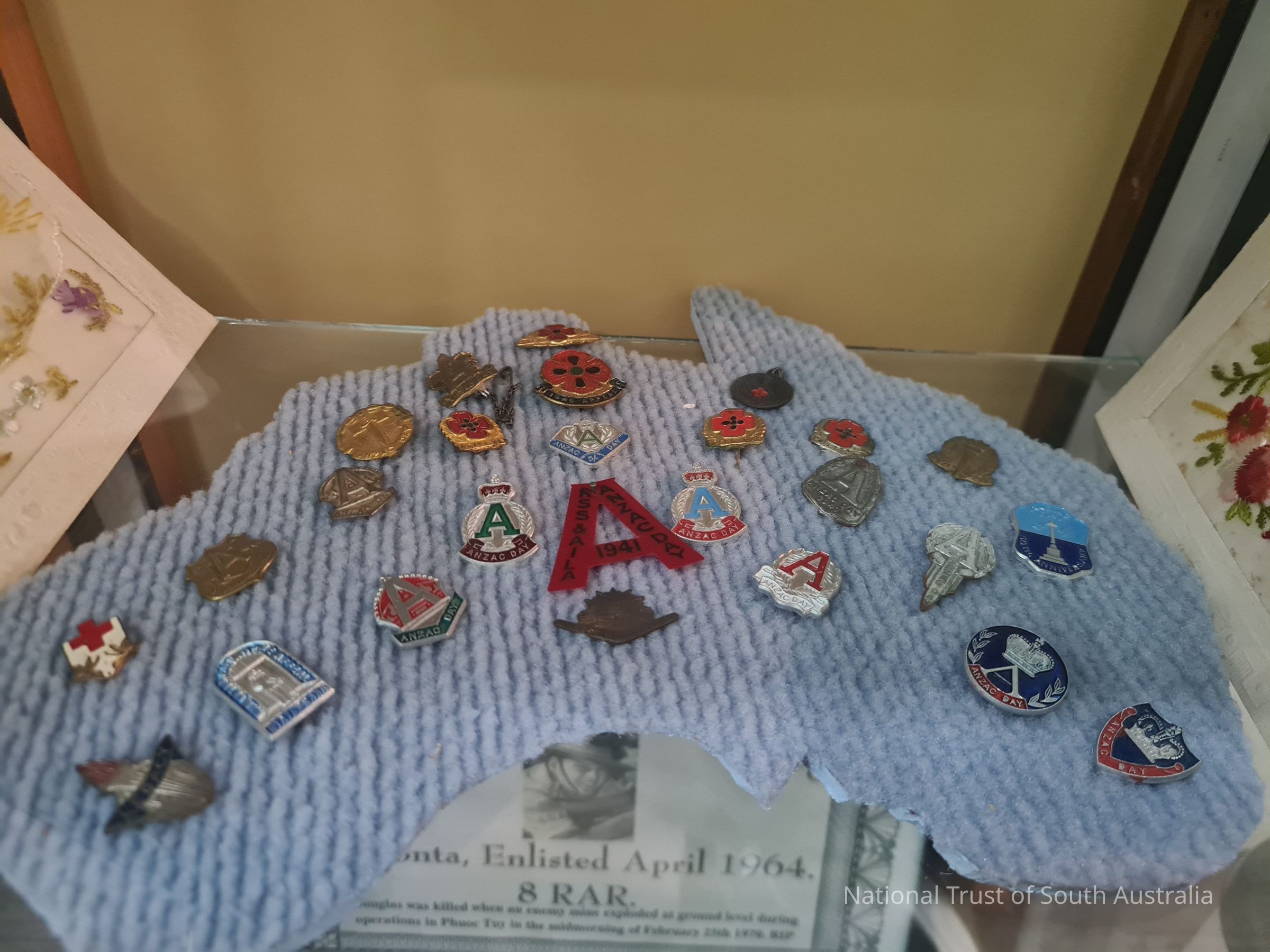 On cloth map of Australia. Approx 26 badges