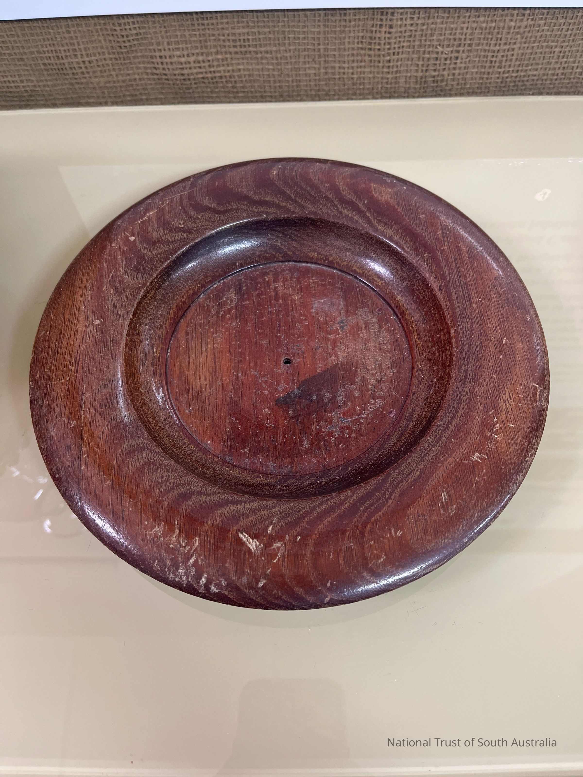 Wooden collection plate used at Church of Christ, Moonta (closer 1976)