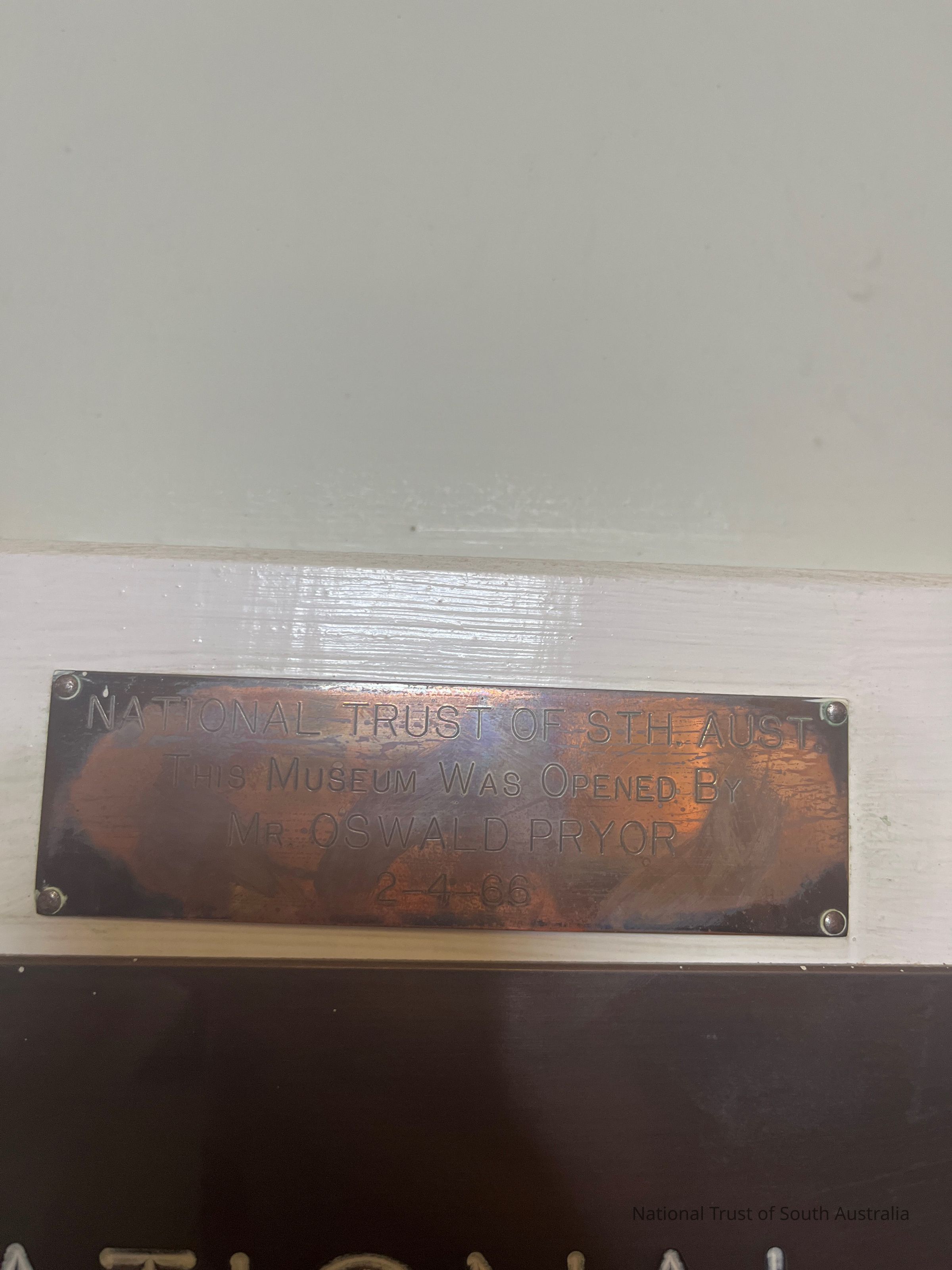Text: National Trust of Sth Aust This Museum Was Opened By Mr. Oswald Pryor 2-4-66