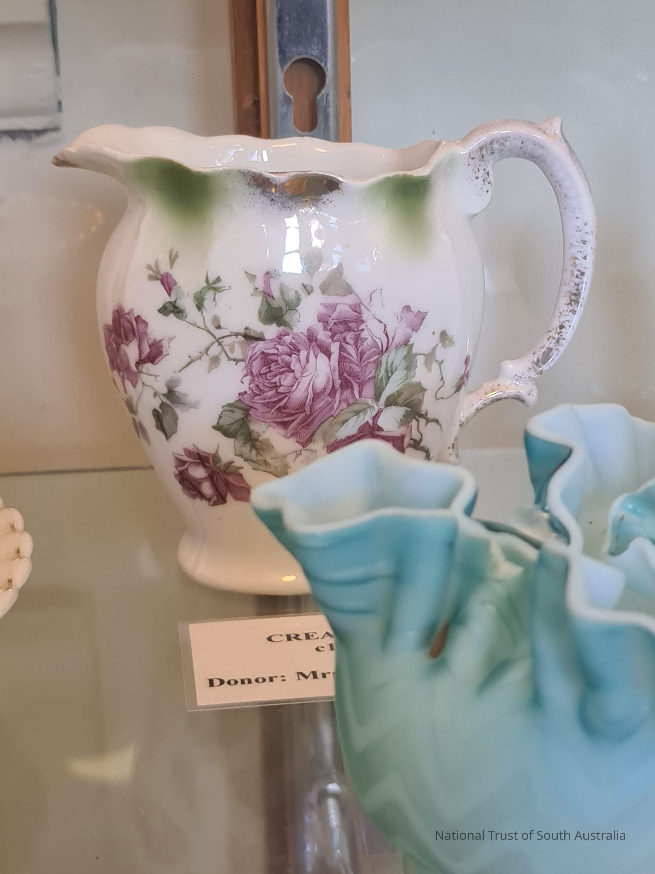 Cream Jug circa 1901. Rose pattern. Donated by Mrs Ted Rodda.